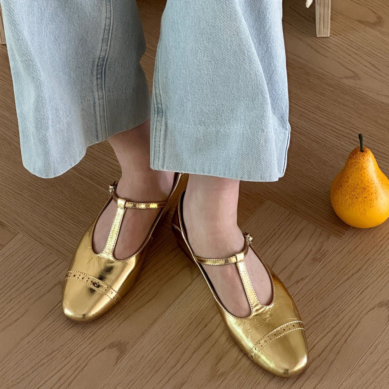 양가죽 버전 ~ 저녁 부드러운 신발 T 자형 둥근 발가락 정품 가죽 프랑스 스타일 메리 제인 신발 여성 플랫 실버 신발