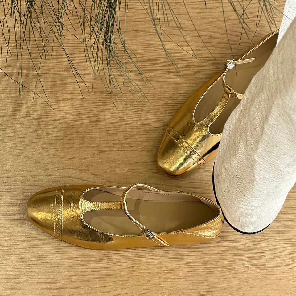양가죽 버전 ~ 저녁 부드러운 신발 T 자형 둥근 발가락 정품 가죽 프랑스 스타일 메리 제인 신발 여성 플랫 실버 신발스토어 가기
