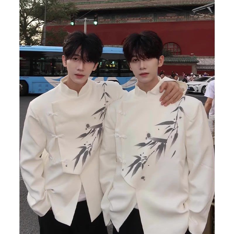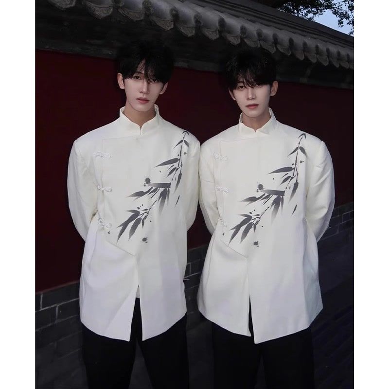 새로운 중국 남성 어깨 패딩 세트 재킷 남자 여름 얇은 중국 스타일 약혼 중산 탕 세트 한푸 착용스토어 가기