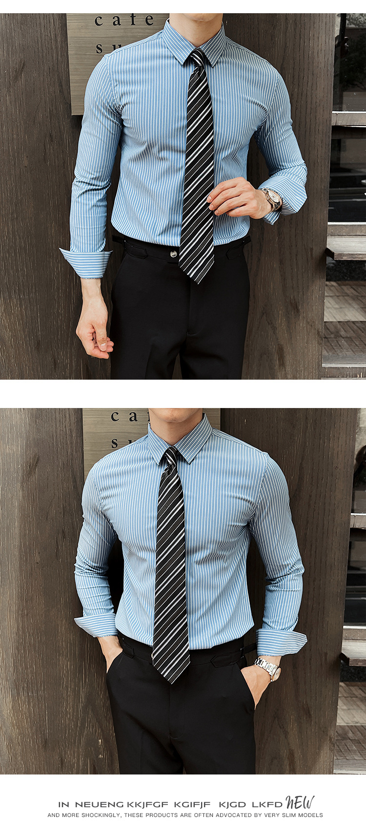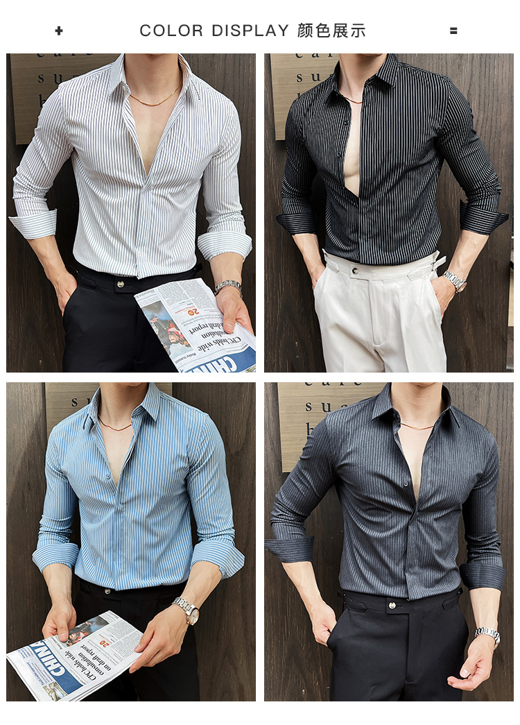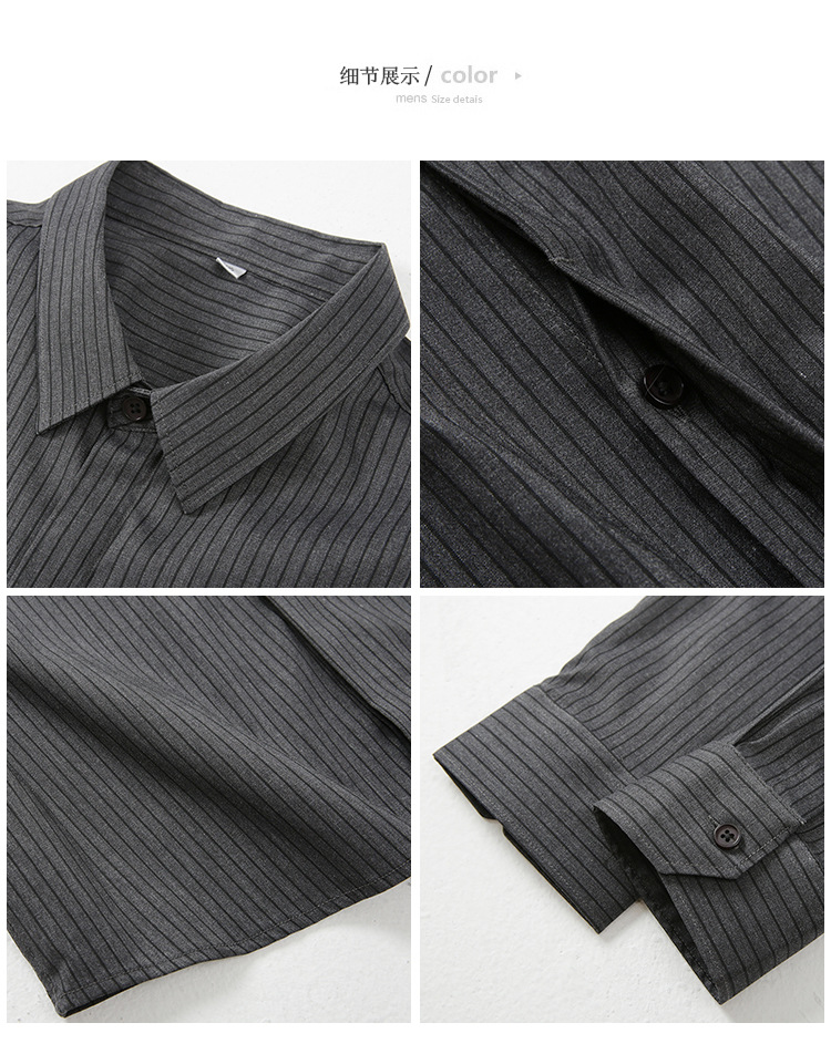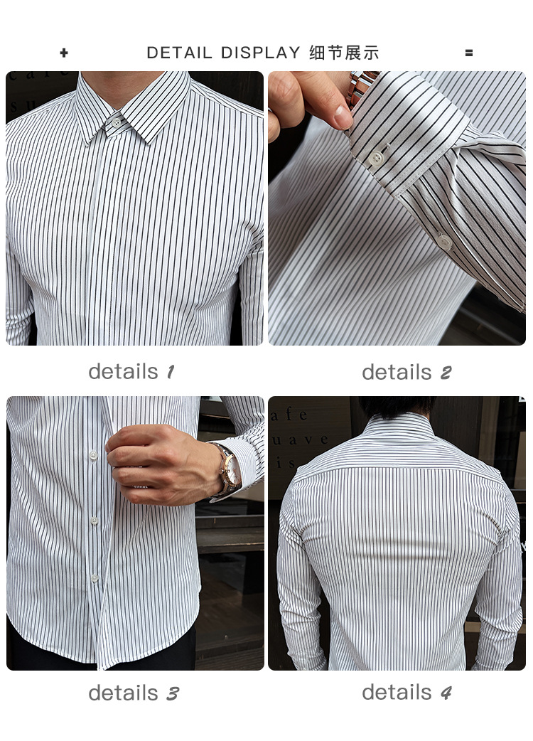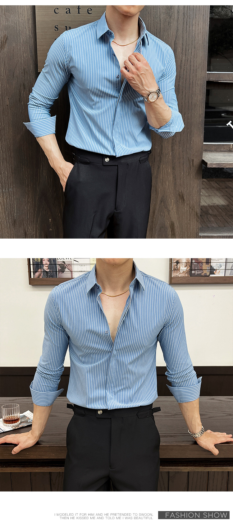 라이브 방송 판매 봄 신상 남성 스트라이프 다크 플래킷 긴팔 셔츠 슬림핏 멋스러운 영국 트렌드 셔츠스토어 가기