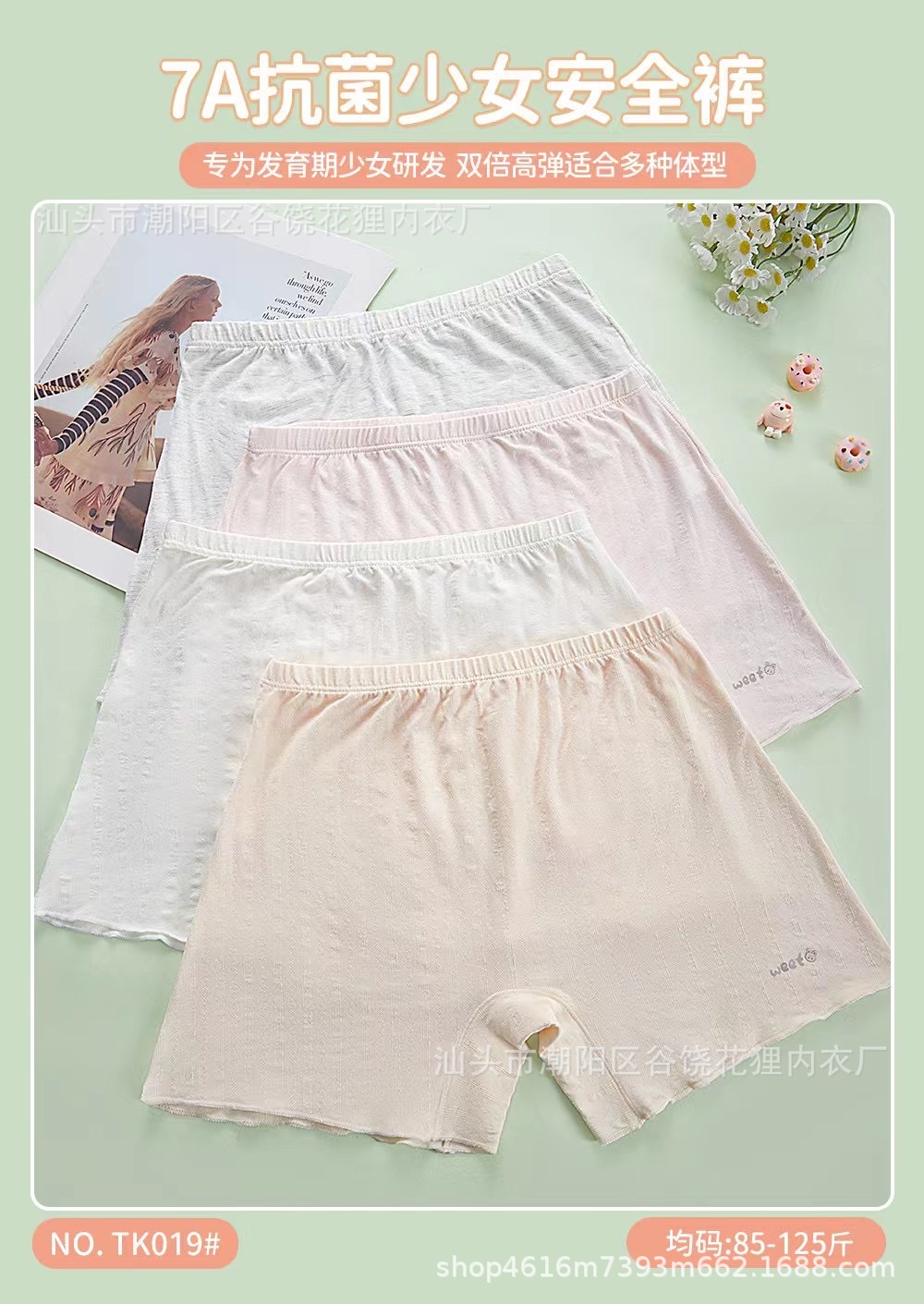 여름 안티 라이트 안전 바지 소녀 속옷 복서 7A 항균 소녀 안전 속옷 학생들을위한 통기성