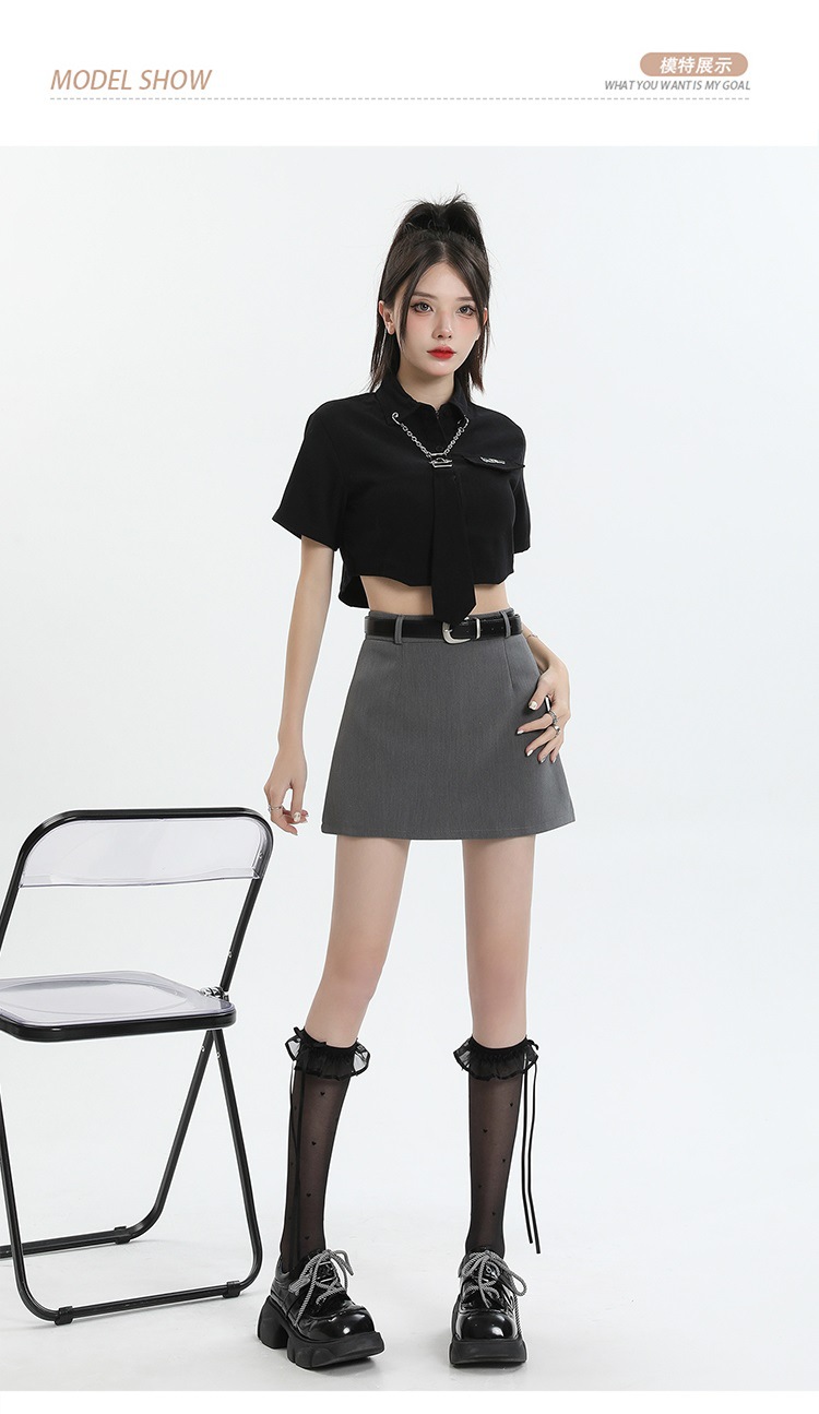 작은 높은 허리 회색 세트 스커트 여성의 봄과 여름 우아한 A 라인 스커트 블랙 슬림 엉덩이 짧은 치마스토어 가기