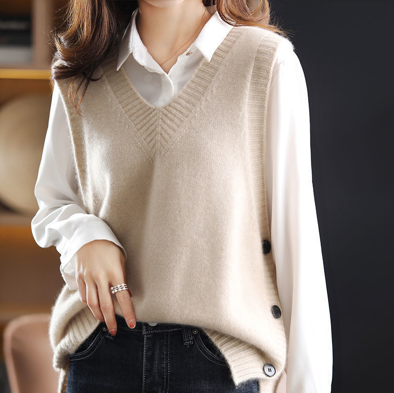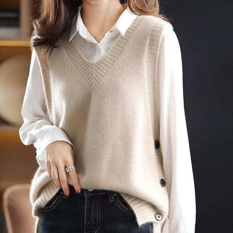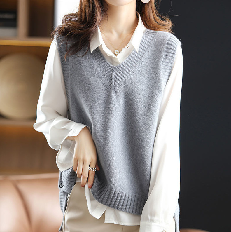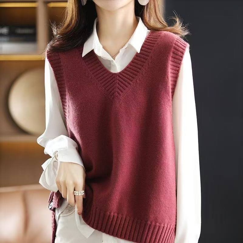 봄과 가을 새로운 민소매 최고 스웨터 조끼 여성 조끼 쌓인 V-Neck Loose Outer 착용 스웨터 내부 착용