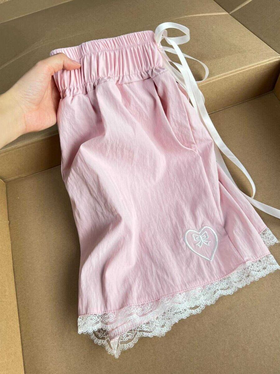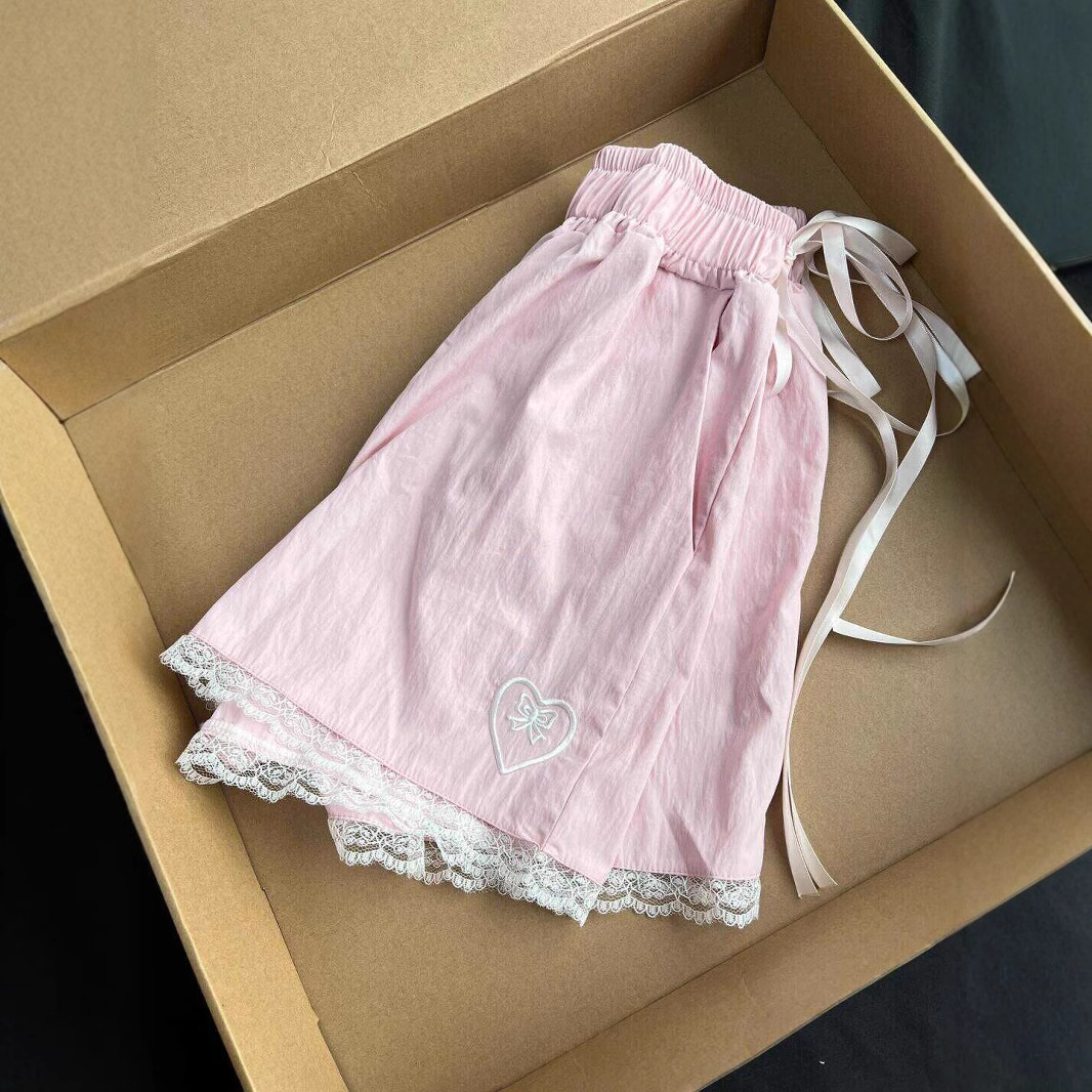 오버 사이즈 300 진 러브 자수 레이스 캐주얼 반바지 여성 여름 디자인 센스 틈새 순수한 욕망 바지