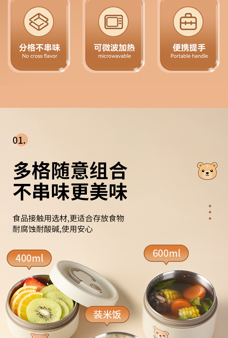 304 스테인레스 스틸 절연 도시락 크로스 국경 전자 레인지 난방 야외 캠핑 휴대용 도시락 슈퍼마켓 선물 세트스토어 가기