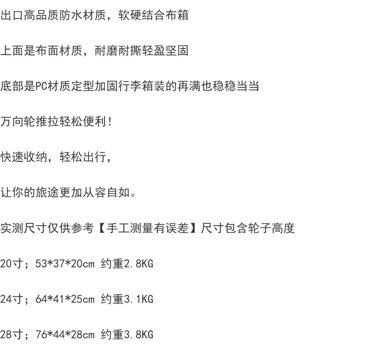 내보내기 단일 수하물 방수 방수 초경량 내마모성 더러운 대용량 20 인치 탑승 상자 24 인치 여행 가방