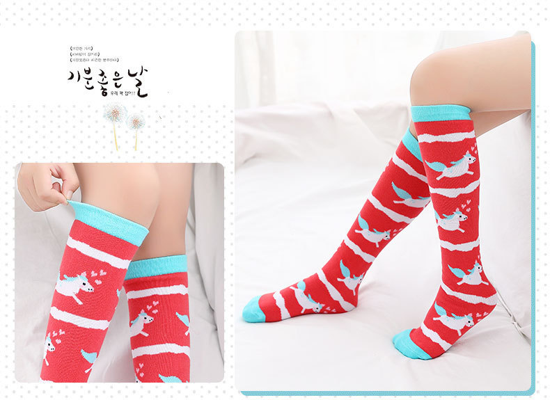 중간 튜브 양말 스트레이트 양말 유니콘 만화 무릎 높이 스타킹 어린이 스타킹스토어 가기