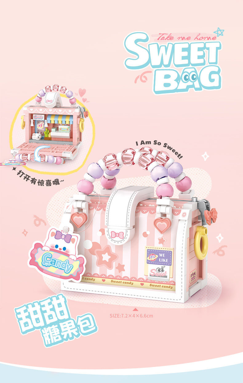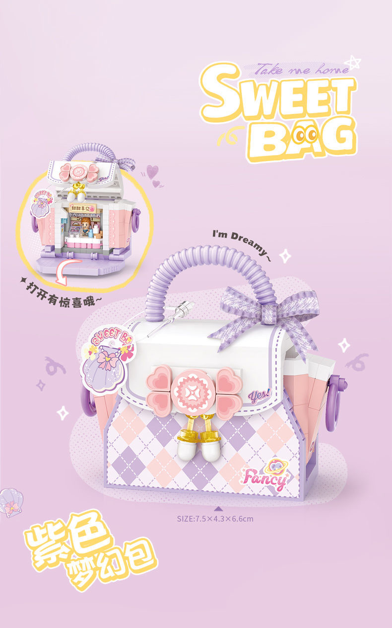 Loz Microparticers 8843-46 Moe Fun Dopamine Girls 핸드백 소녀 생일 선물 장식품 조립 된 빌딩 블록스토어 가기