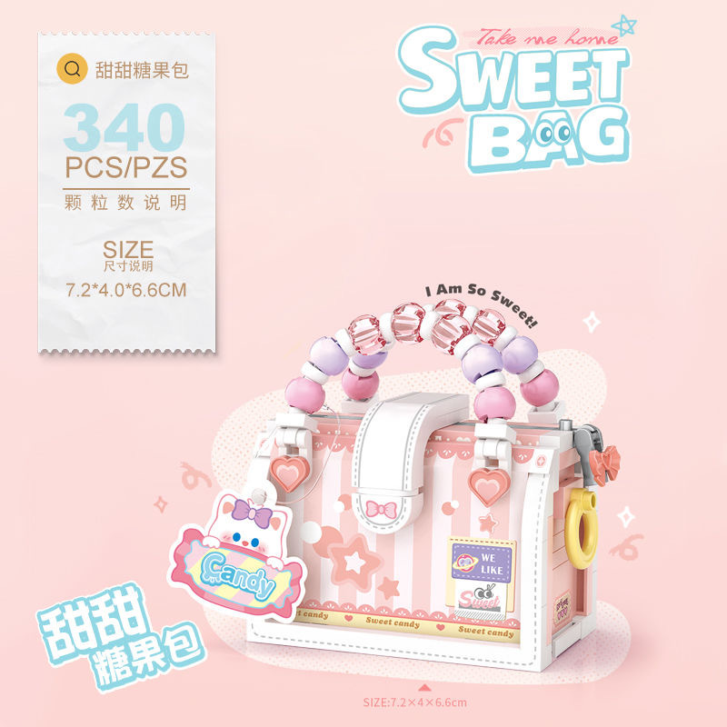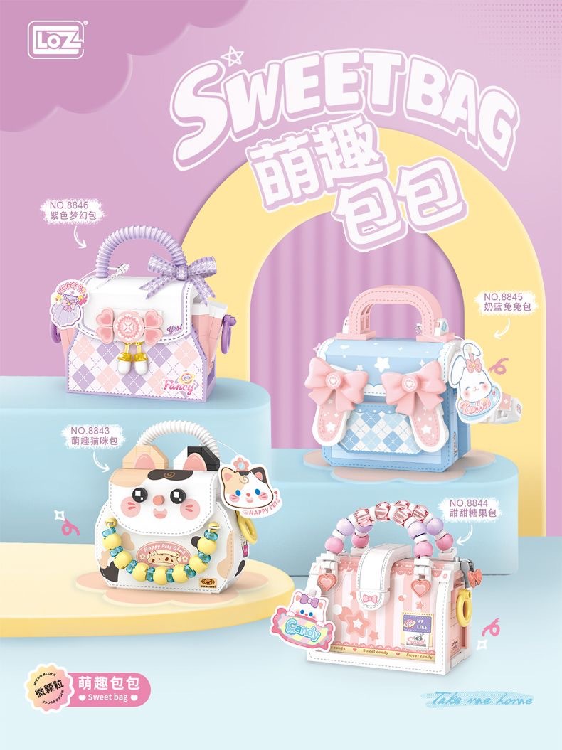 Loz Microparticers 8843-46 Moe Fun Dopamine Girls 핸드백 소녀 생일 선물 장식품 조립 된 빌딩 블록