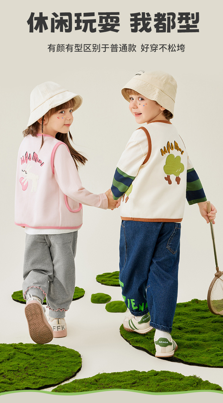 소년과 소녀를위한 MQDmini 봄 새로운 어린이 조끼 귀여운 카디건스토어 가기
