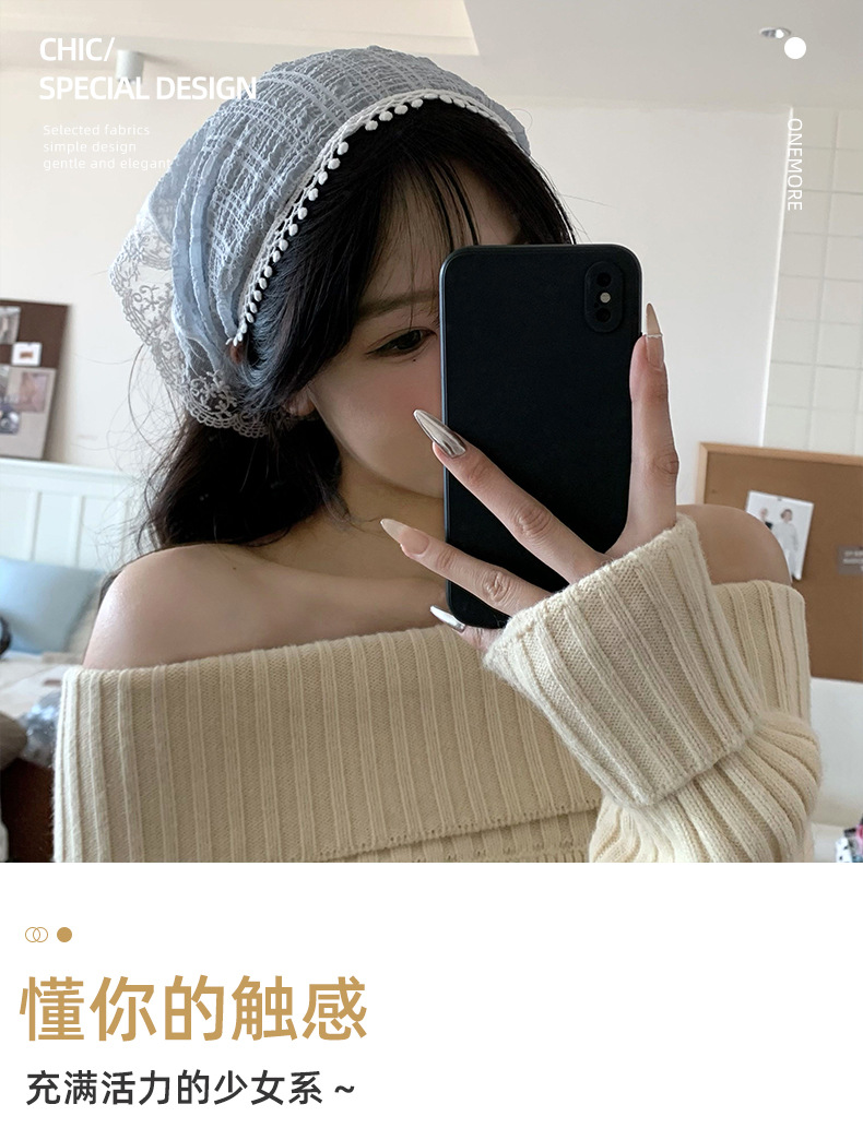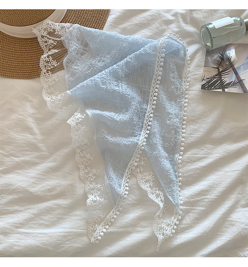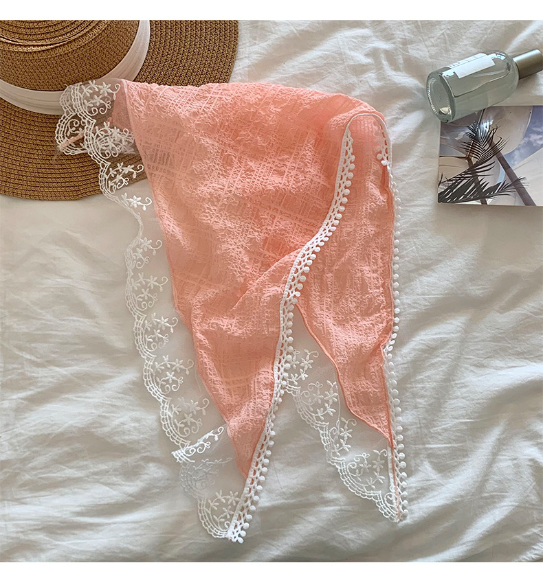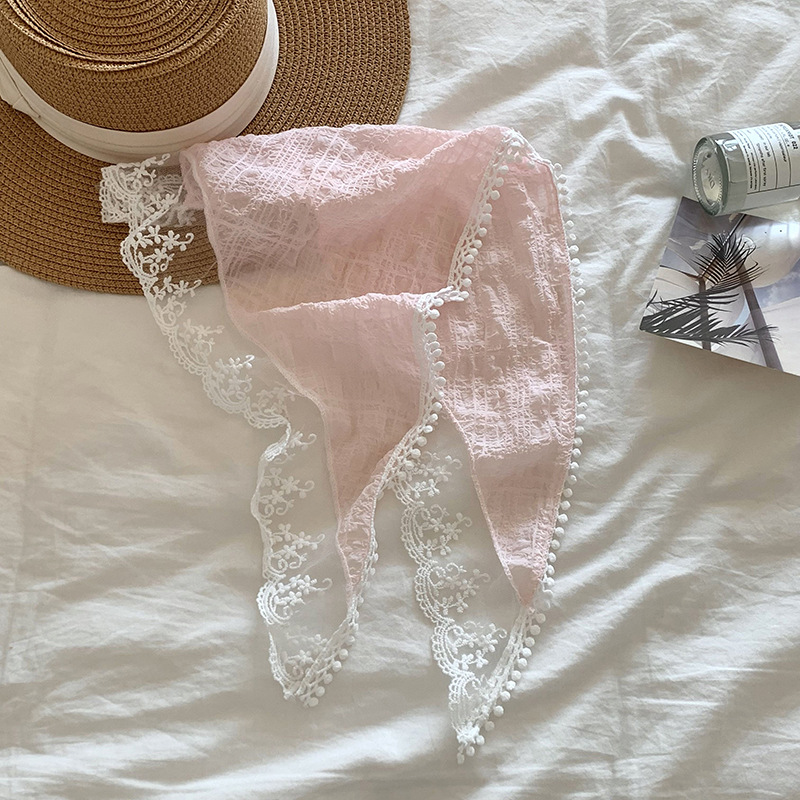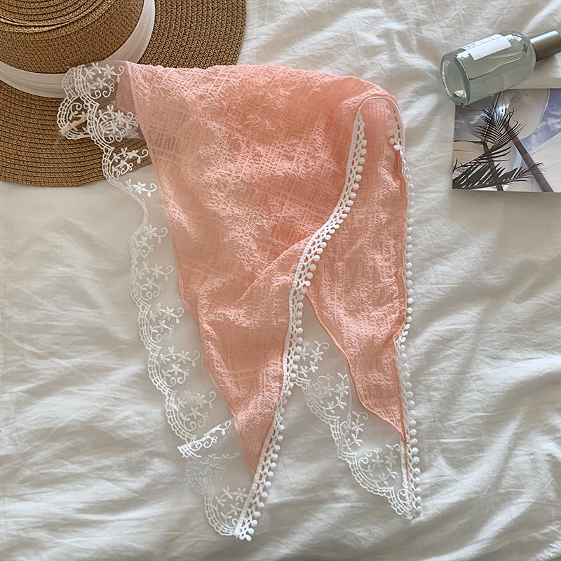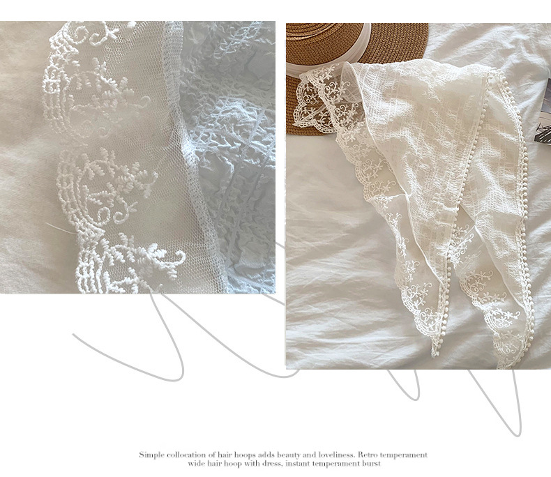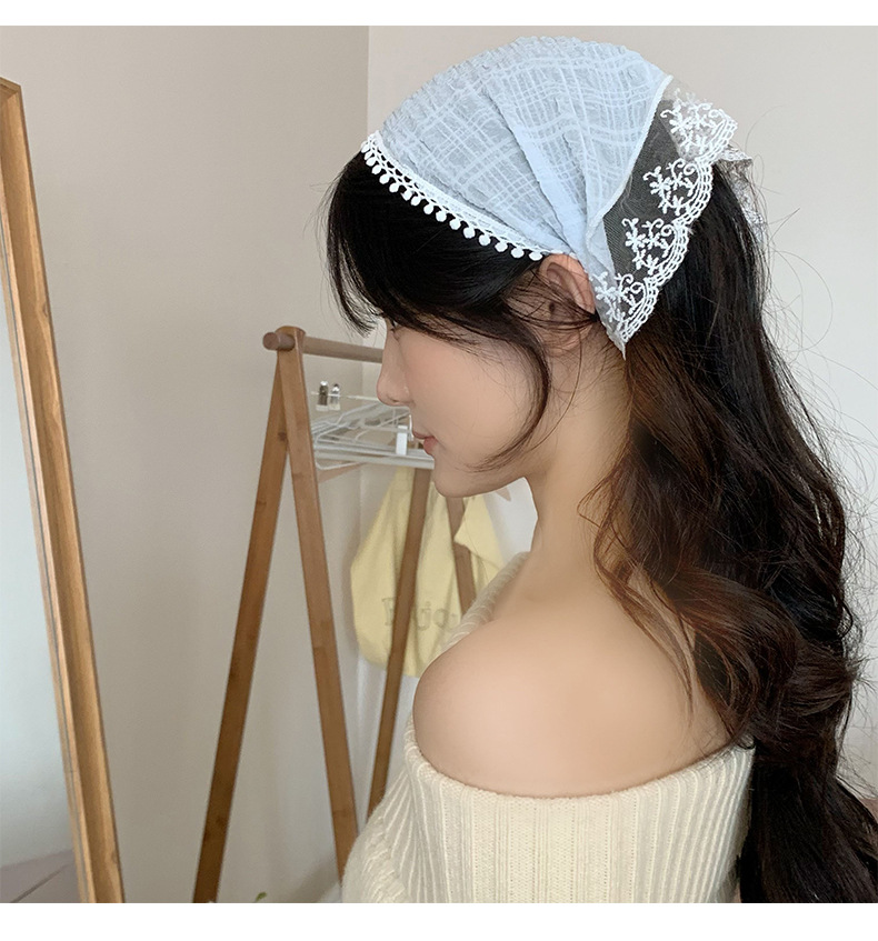 Zhou는 또한 흰색 레이스 목가적 인 스타일 스카프 여성용 망토 가을과 겨울 프랑스 삼각형 스카프 헤어 액세서리 헤어 밴드 타월