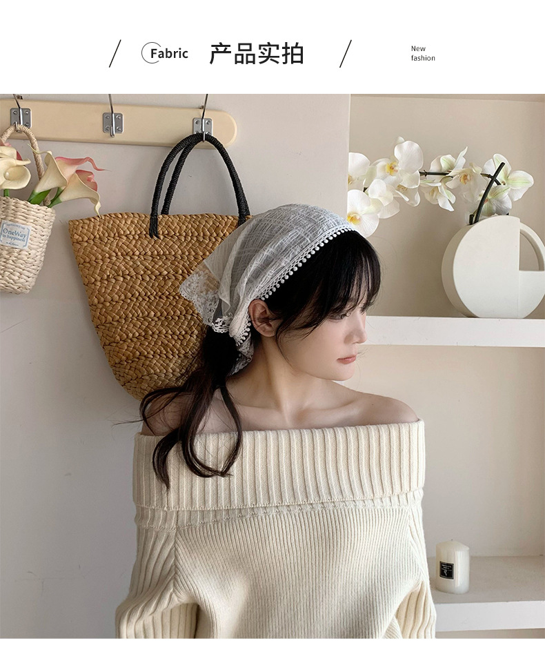 Zhou는 또한 흰색 레이스 목가적 인 스타일 스카프 여성용 망토 가을과 겨울 프랑스 삼각형 스카프 헤어 액세서리 헤어 밴드 타월스토어 가기