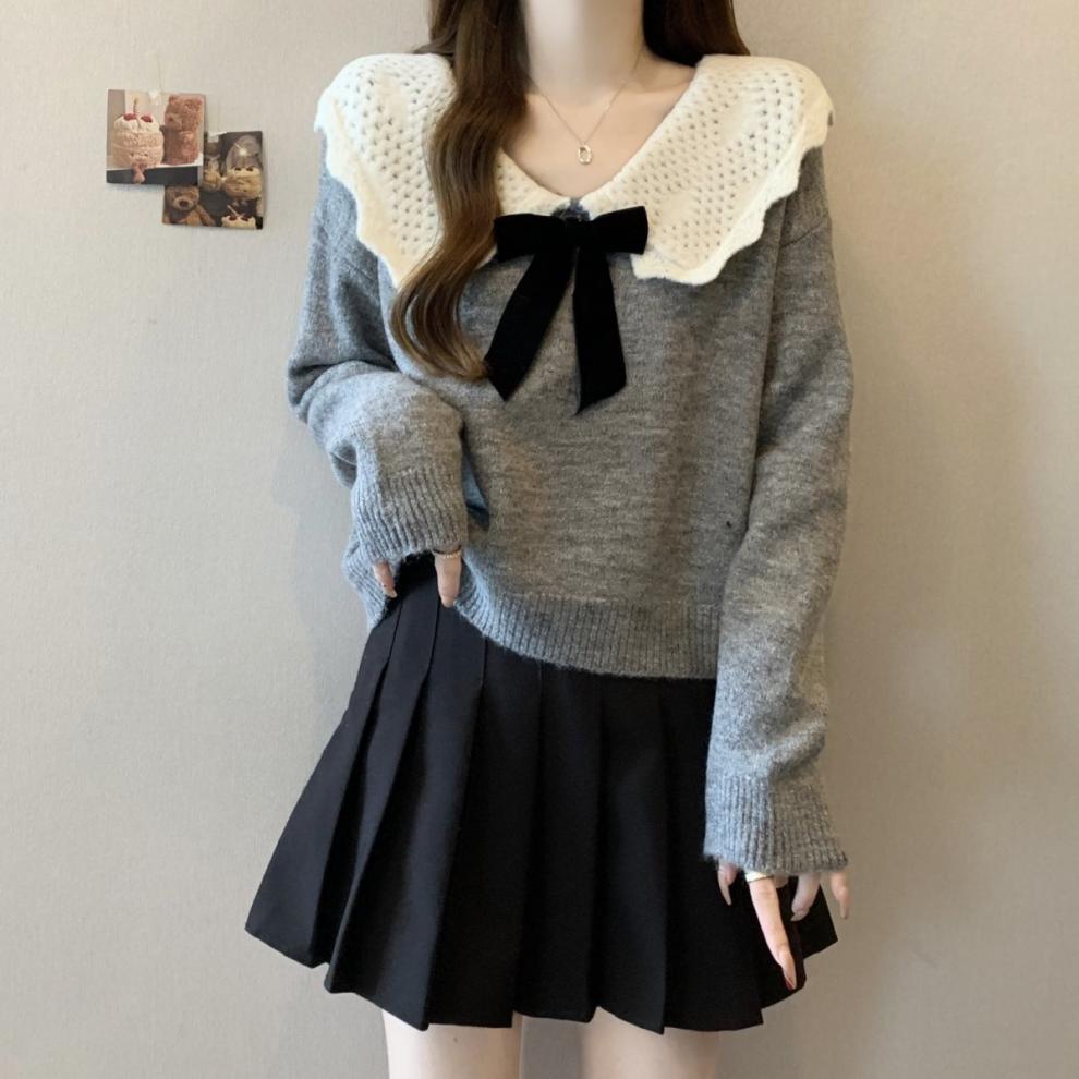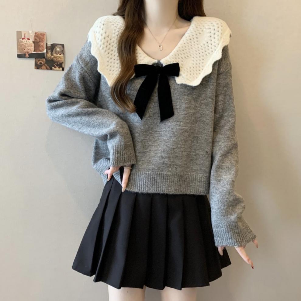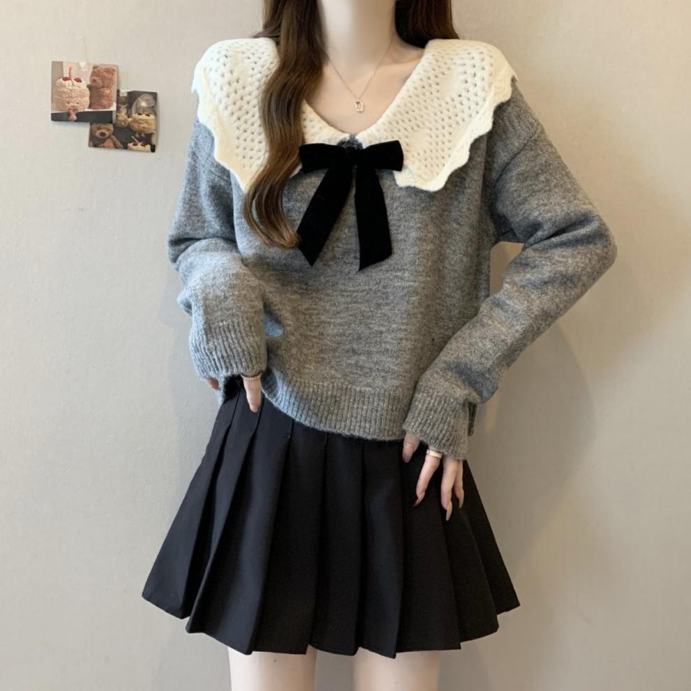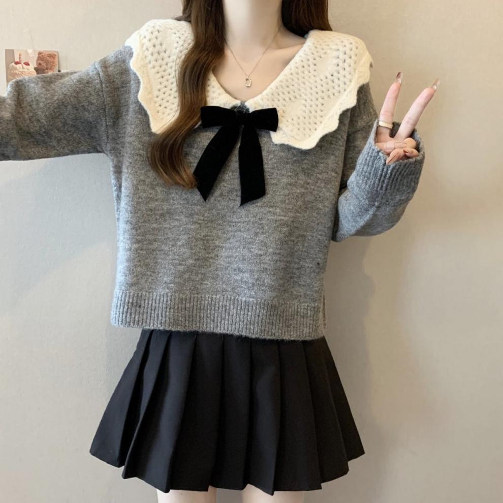 달콤한 디자인 인형 칼라 스웨터 여성 가을 및 겨울 작은 부드러운 연령 감소 게으른 스타일 니트웨어 탑 착용