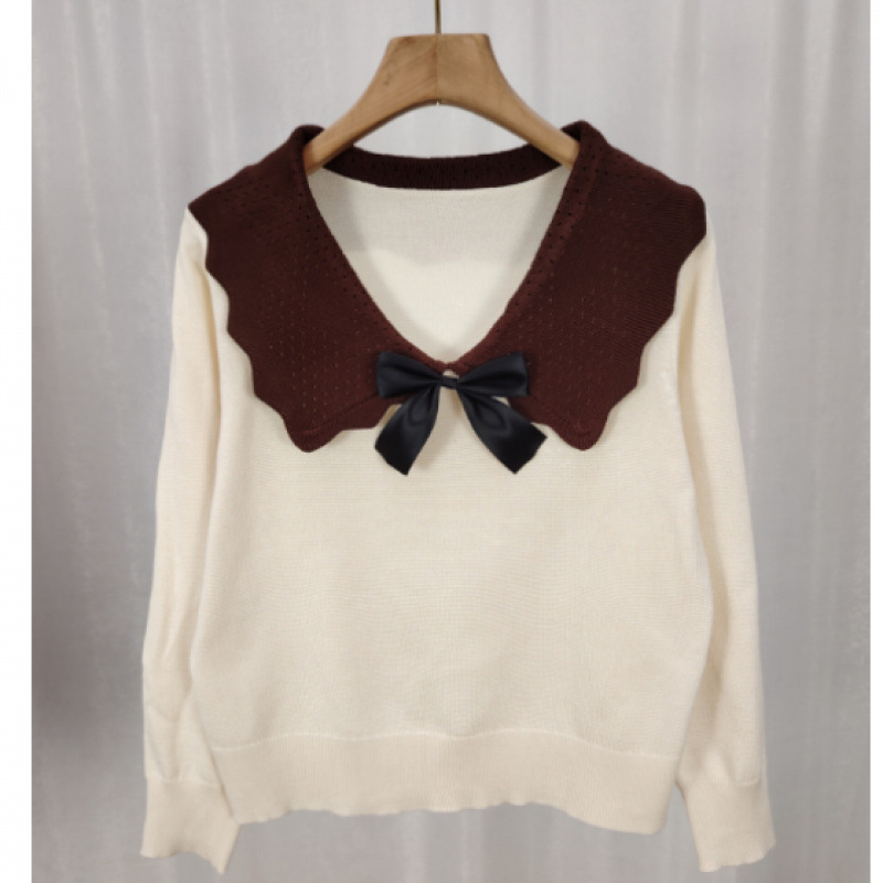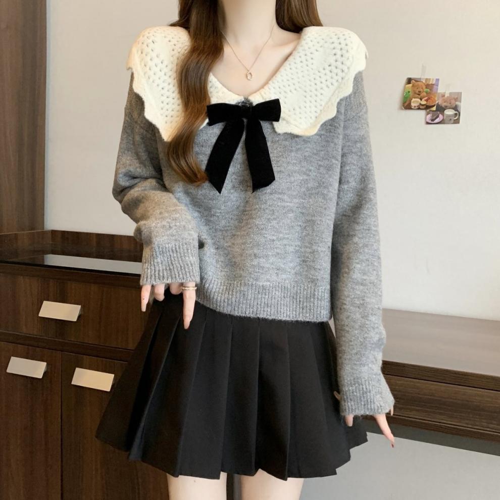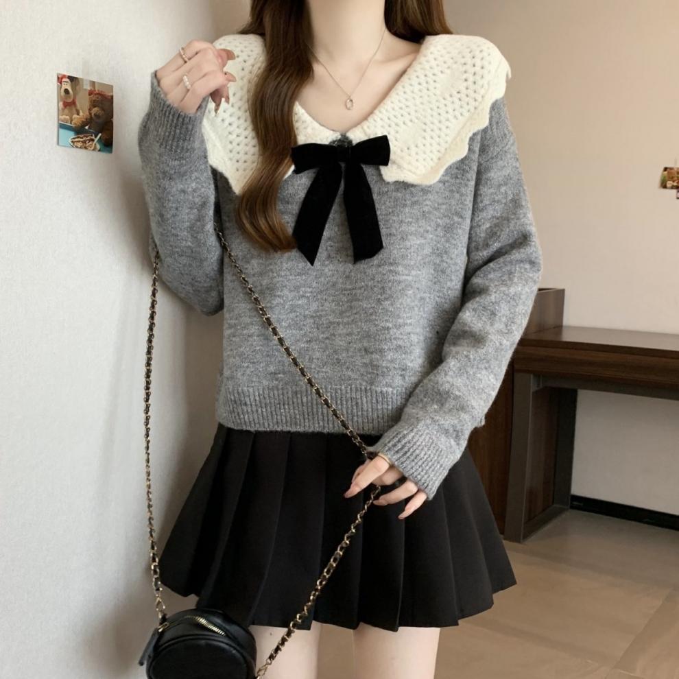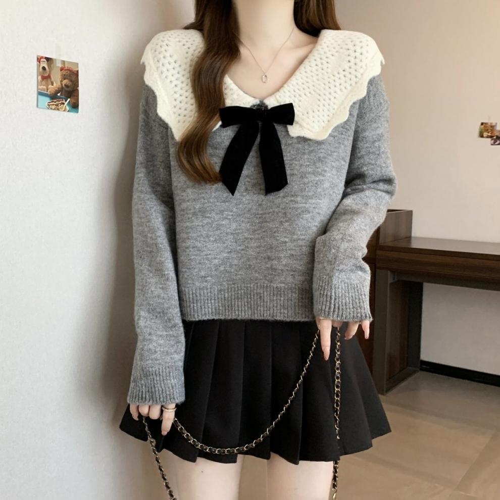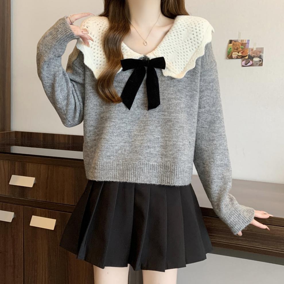 달콤한 디자인 인형 칼라 스웨터 여성 가을 및 겨울 작은 부드러운 연령 감소 게으른 스타일 니트웨어 탑 착용
