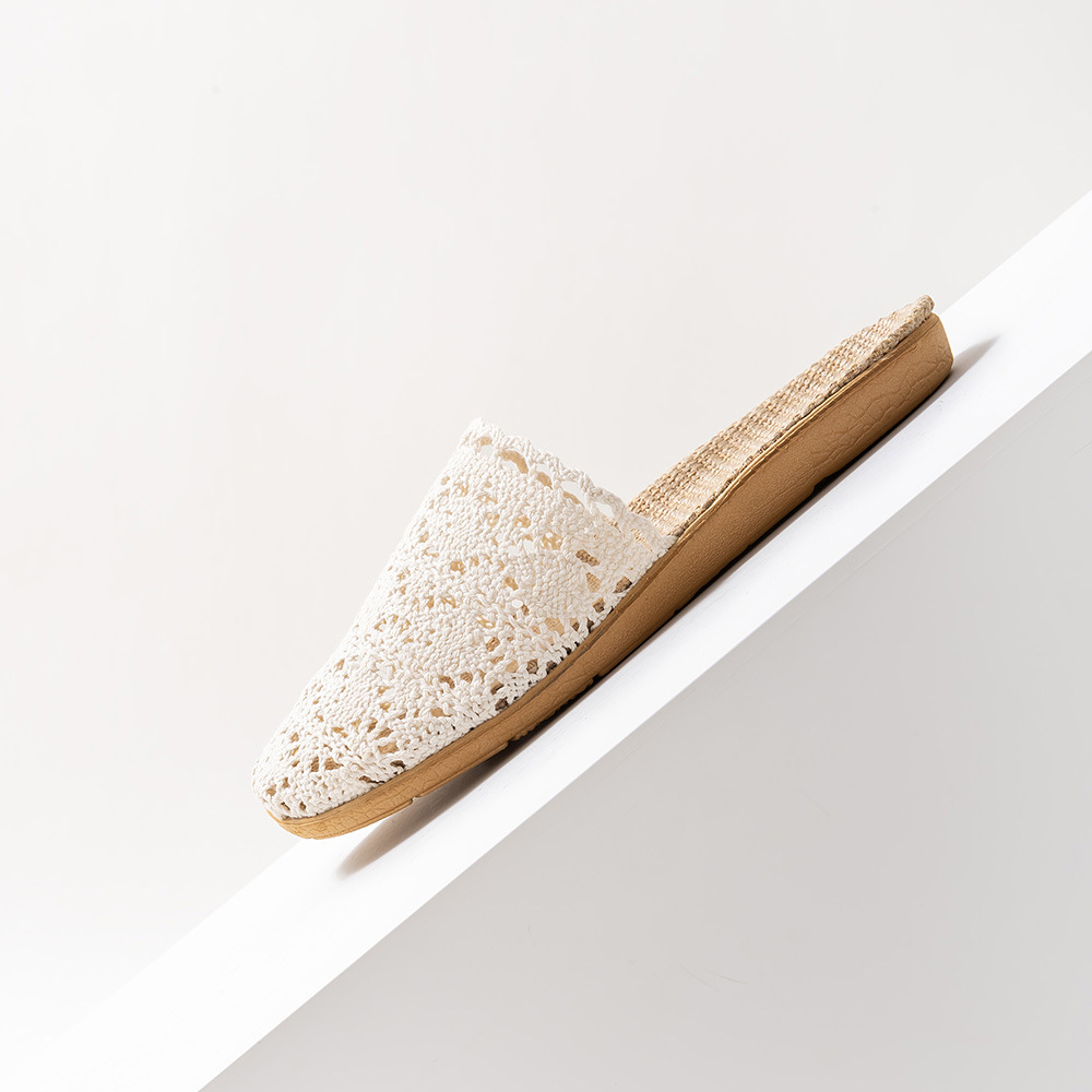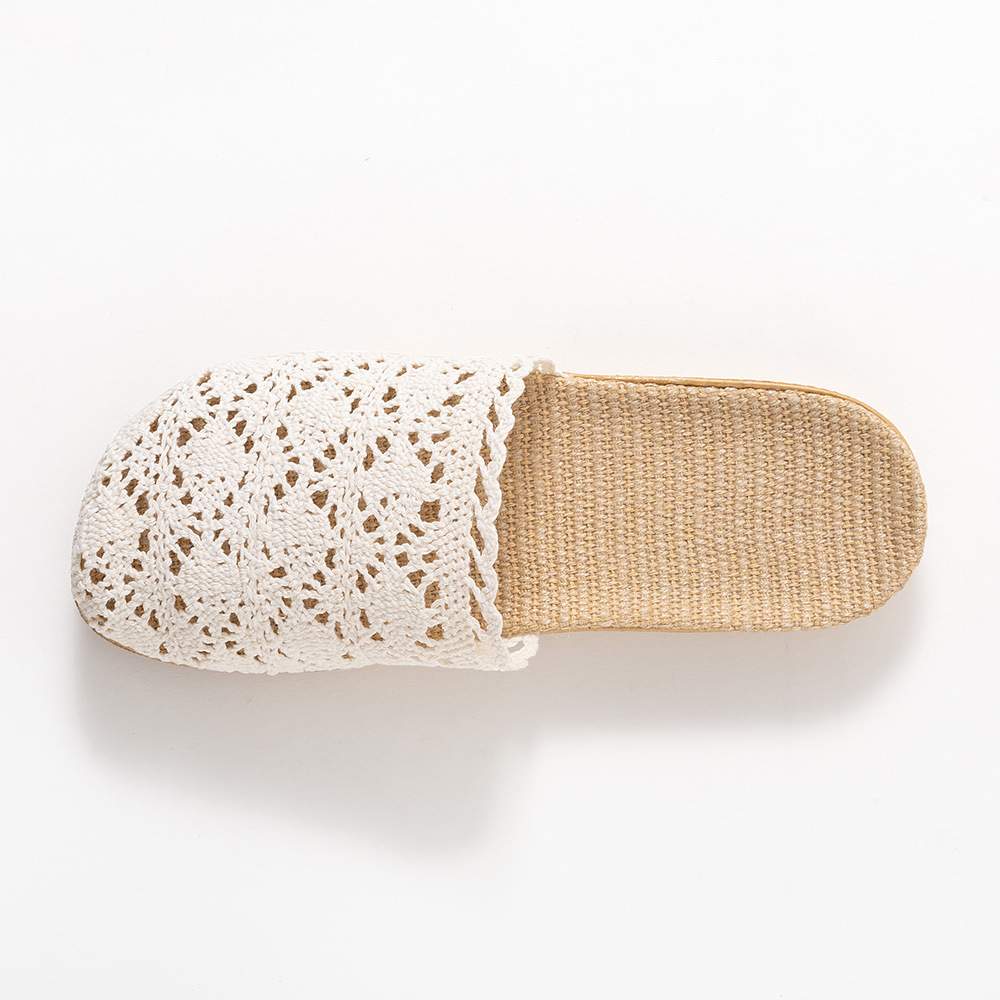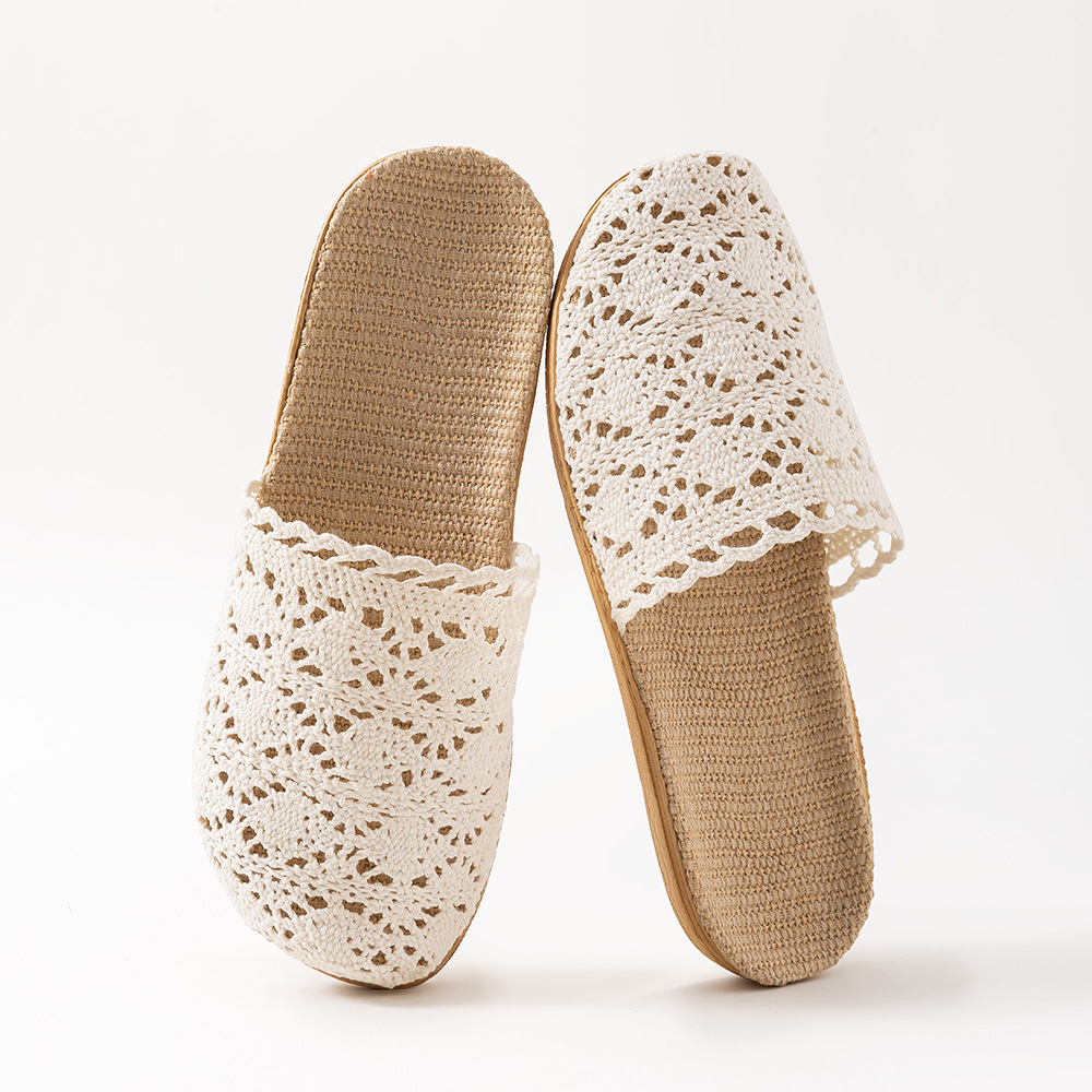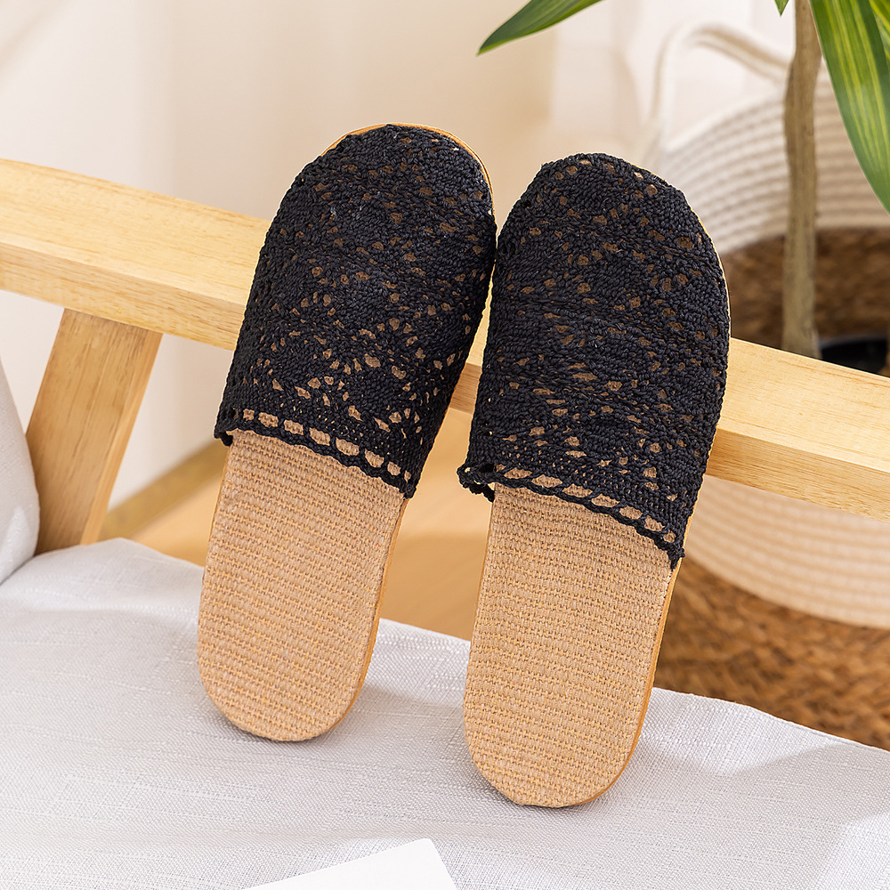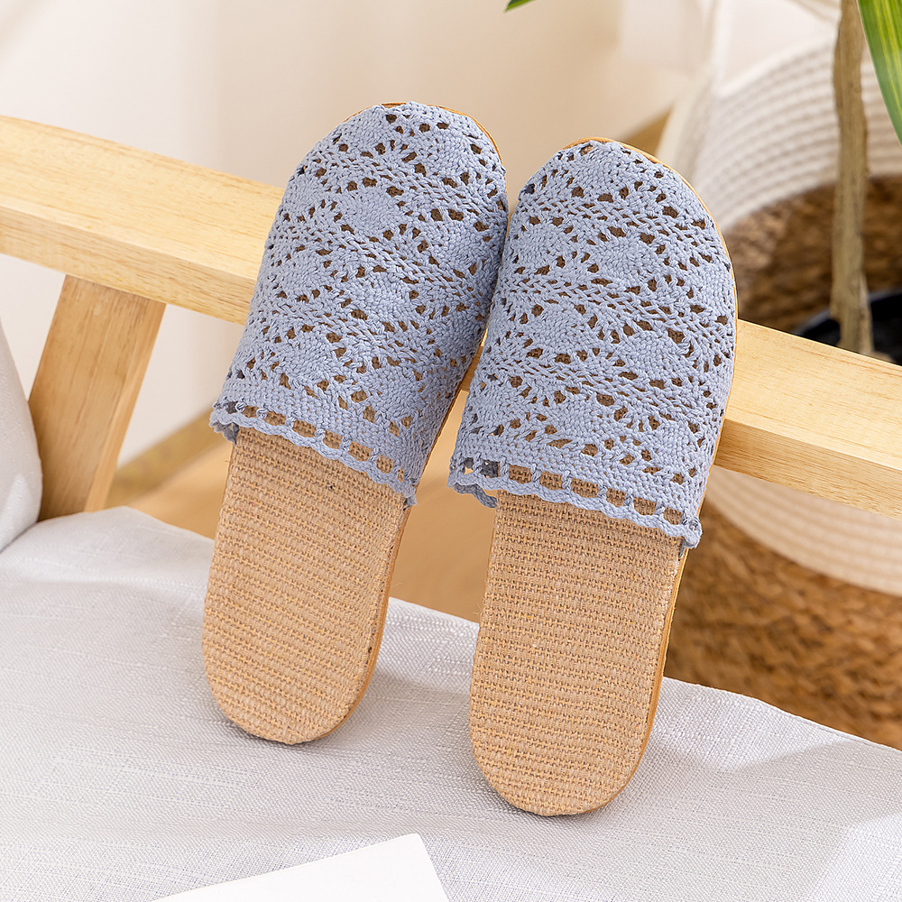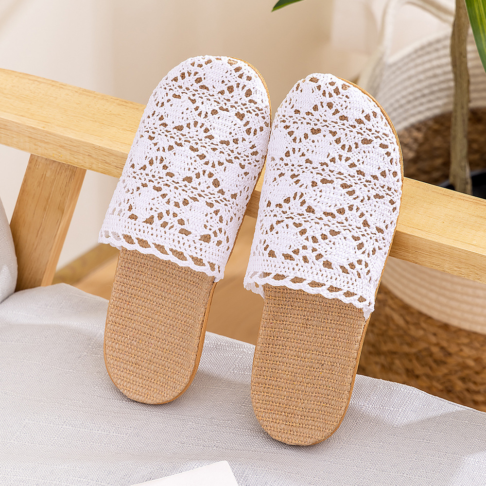 새로운 사계절 바오터우 레이스 홈 리넨 여성 슬리퍼 실내 미끄럼 방지 홈 나무 바닥 침묵 슬리퍼
