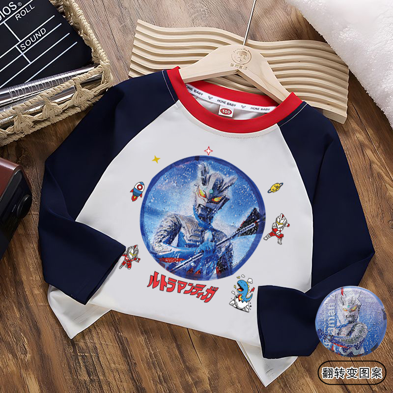 소년의 라슬란 긴 소매 티셔츠 순면 봄과 가을 어린이 최고 울트라 맨 플립 스퀸 색상 변경 옷 트렌디 티셔츠스토어 가기