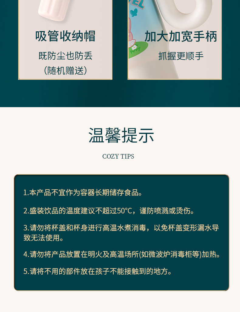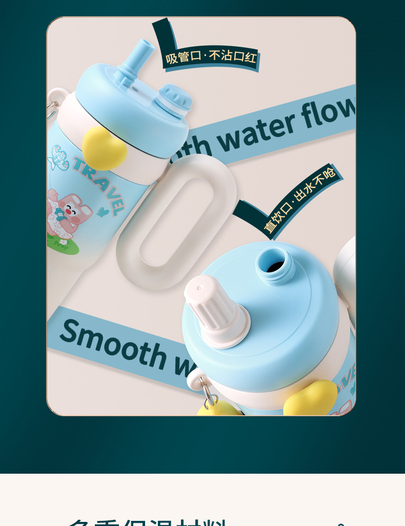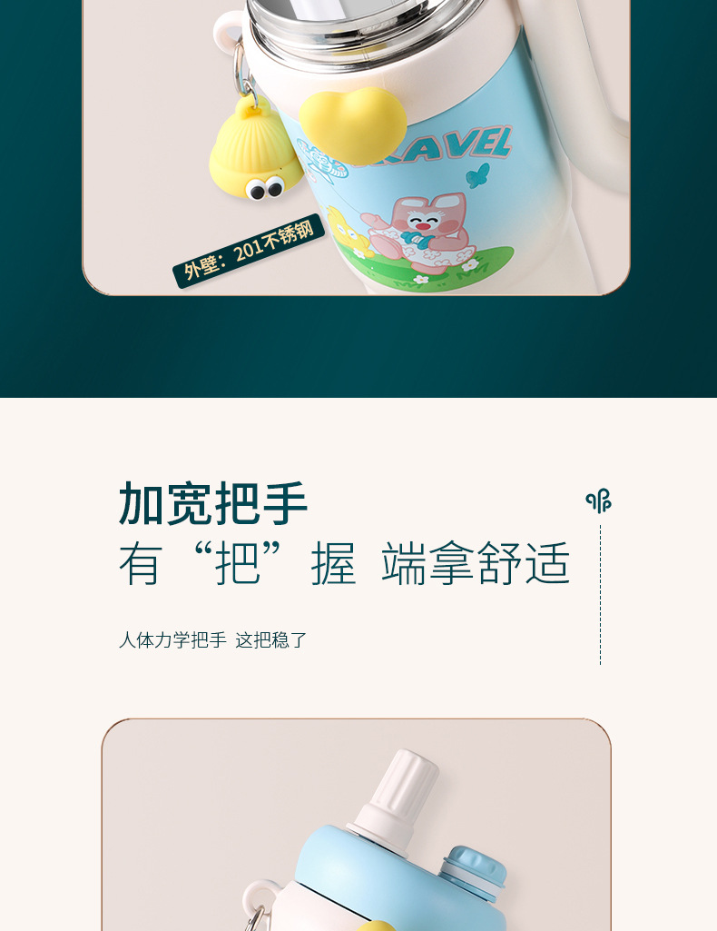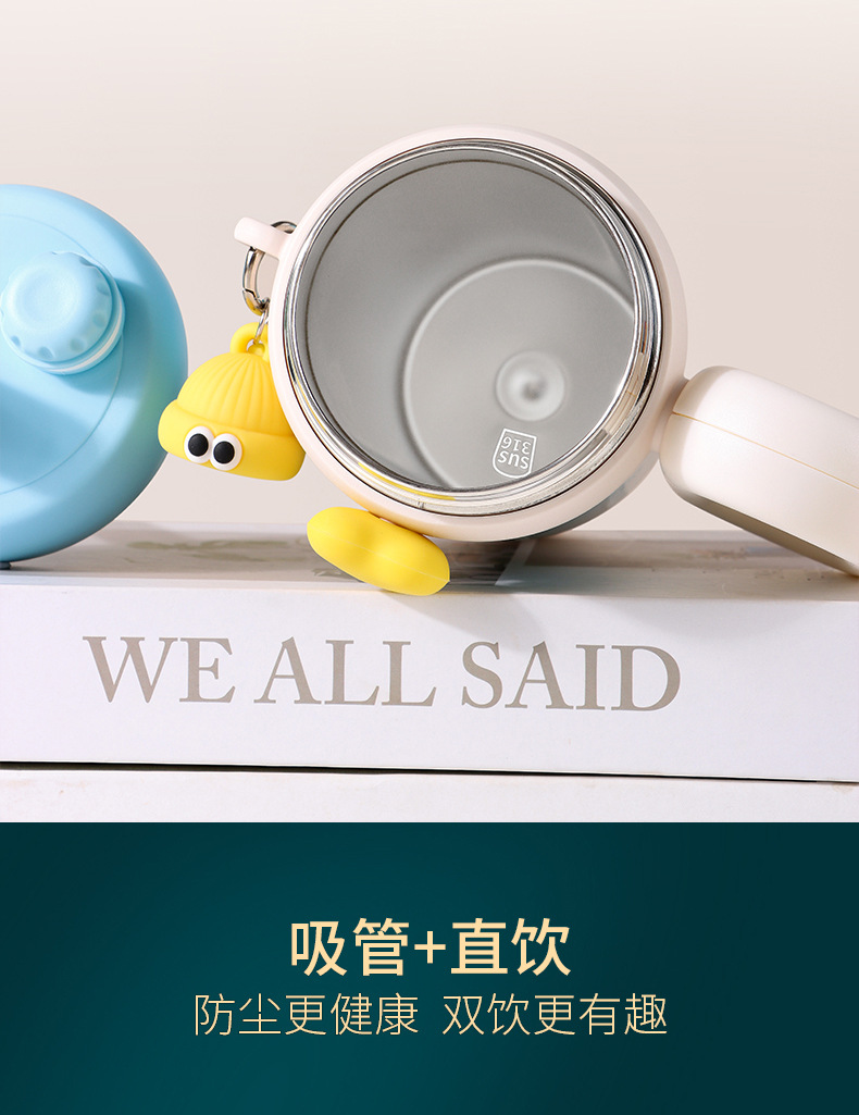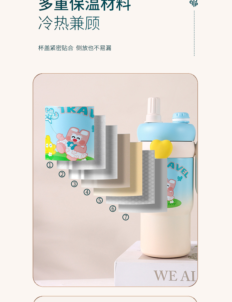 빙바 컵 흡입 튜브 컵 만화 귀여운 스테인레스 스틸 보온병 컵 대용량 소녀 높은 가치의 학생 더블 드루킹 컵스토어 가기