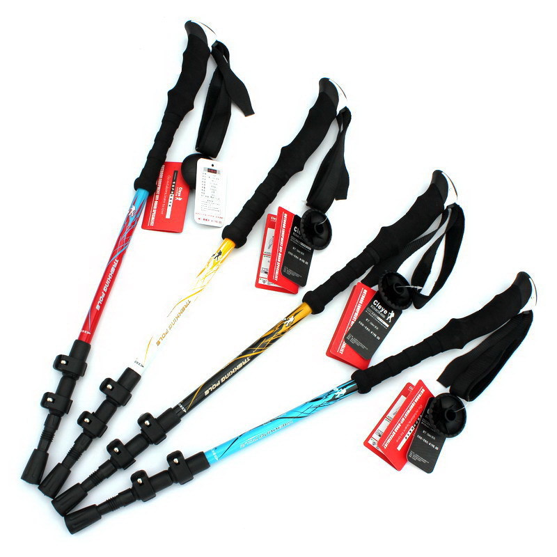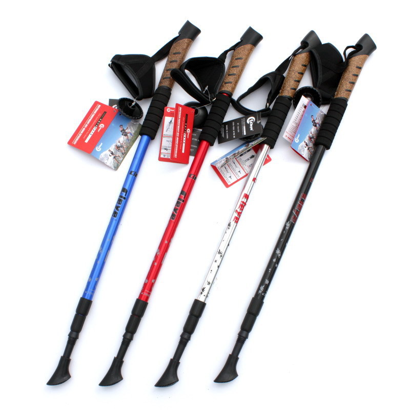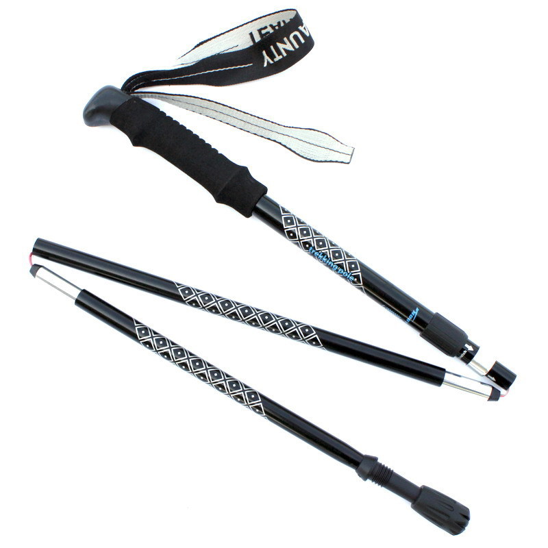 알루미늄 합금 스트레이트 핸들 워킹 스틱 3 섹션 알루미늄 합금 손목 Bracer 망원경 야외 캠핑 미끄럼 방지 야외 등반 스틱