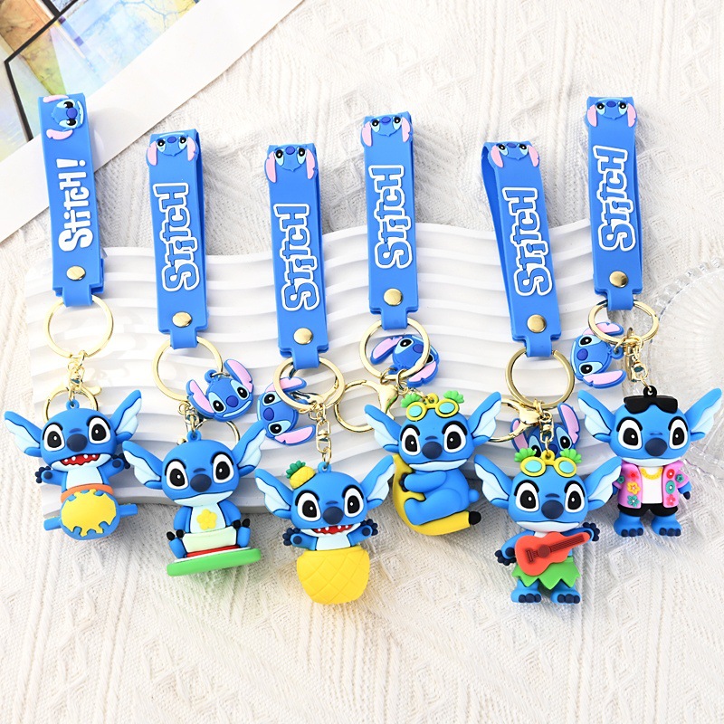 새로운 원피스 스티치 키 체인 귀여운 소프트 접착제 과일 스티치 키 체인 만화 커플 가방 펜던트