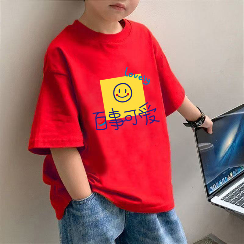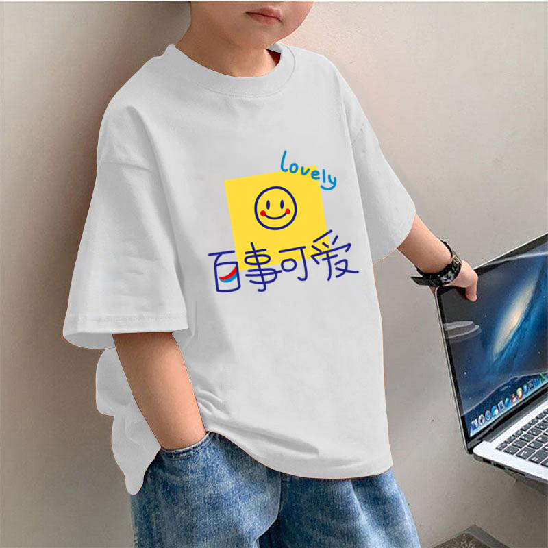 2060 # 아동복 짧은 소매 티셔츠 펩시 귀여운 ~ 스마일리 프린트 귀여운 조커 여름 탑 큰 어린이 여름 원피스