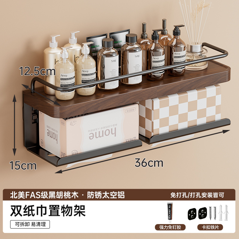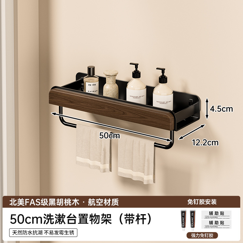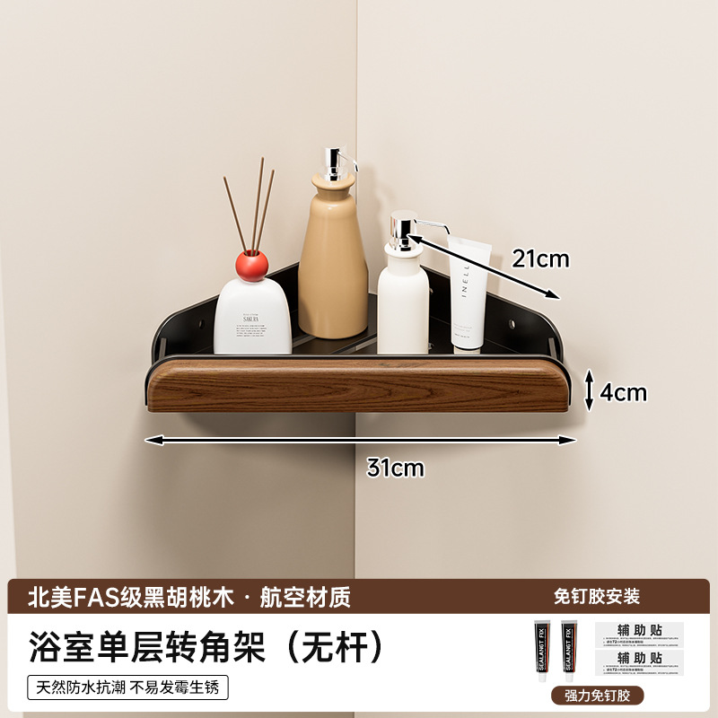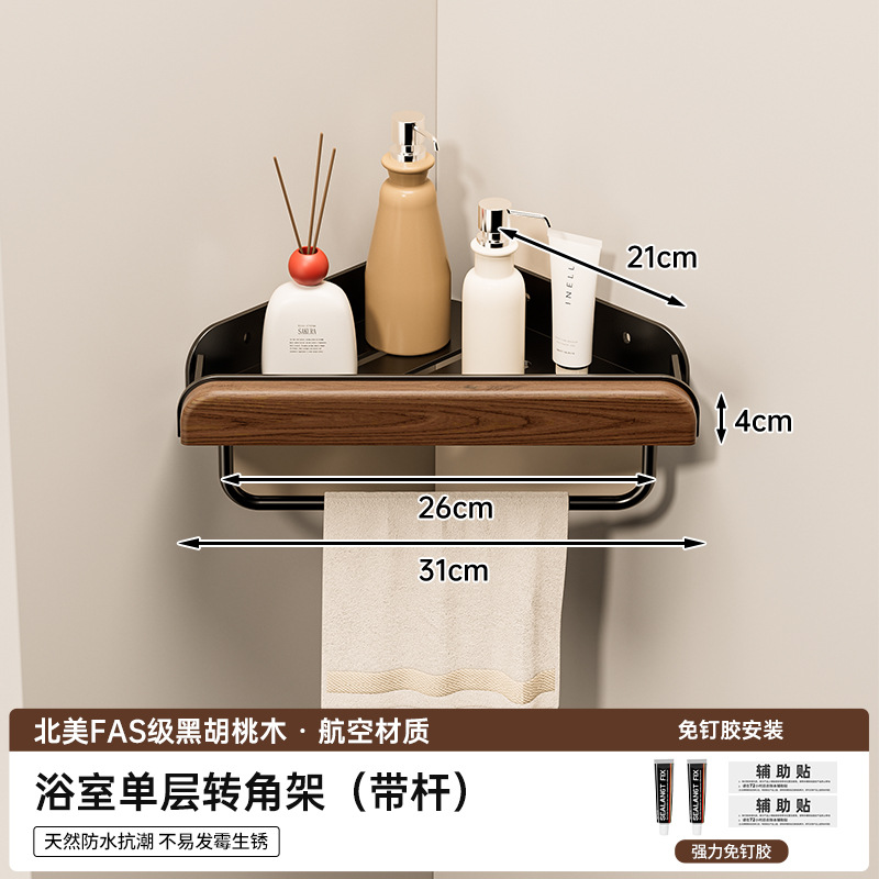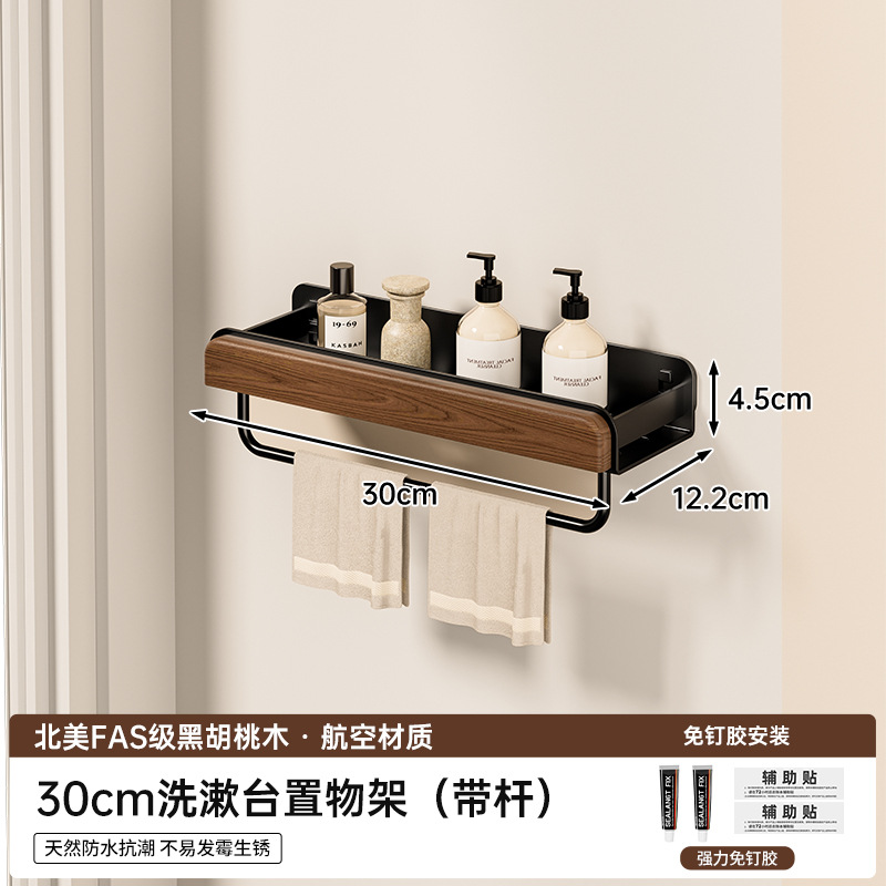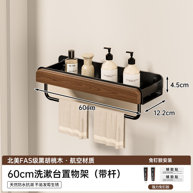 골동품 욕실 보관 랙 욕실 세척 테이블 호두 벽 장착 펀치없는 벽 보관 랙스토어 가기