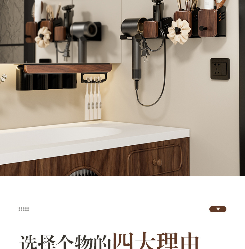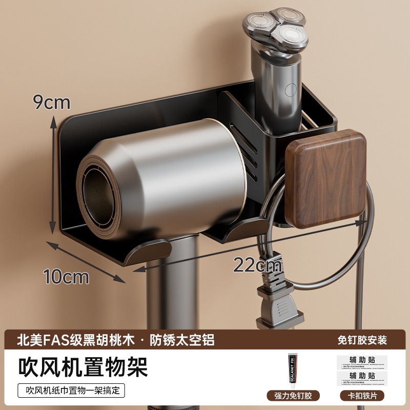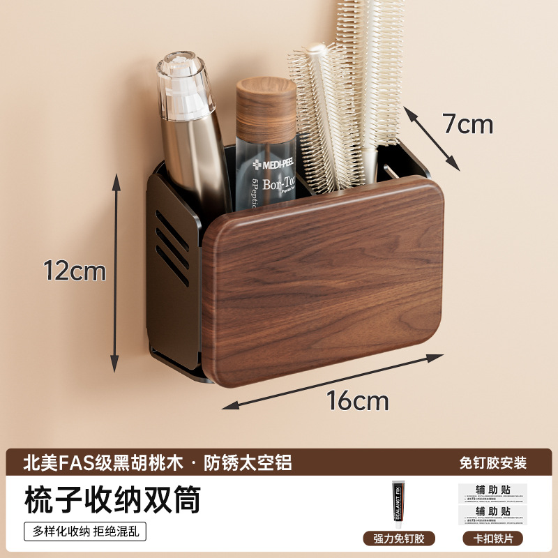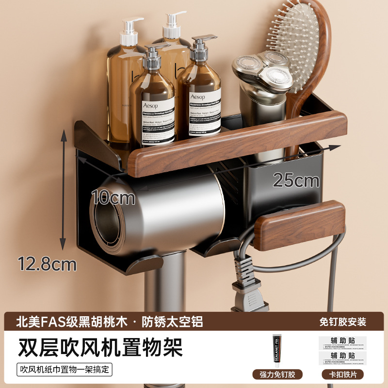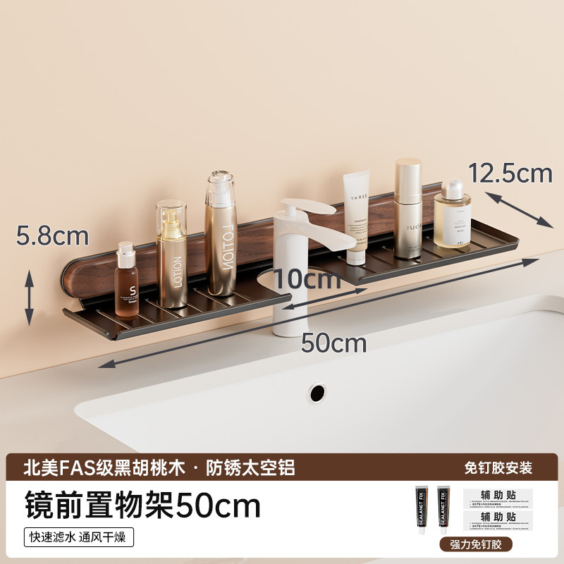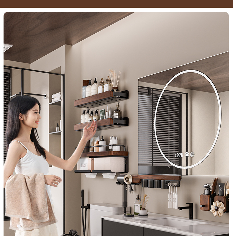 골동품 욕실 보관 랙 욕실 세척 테이블 호두 벽 장착 펀치없는 벽 보관 랙스토어 가기