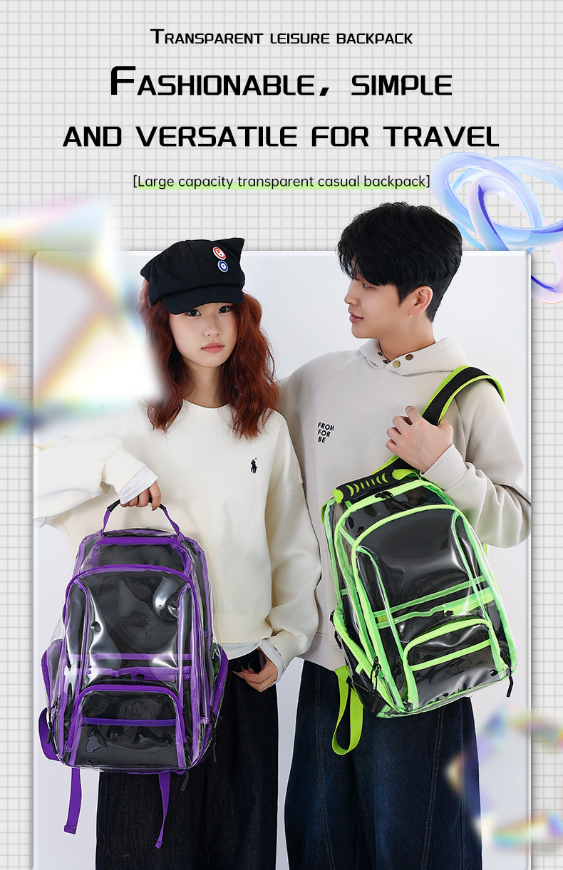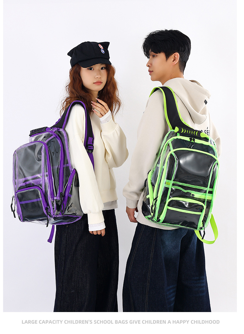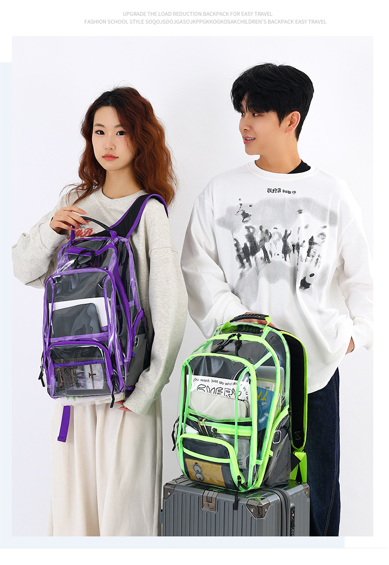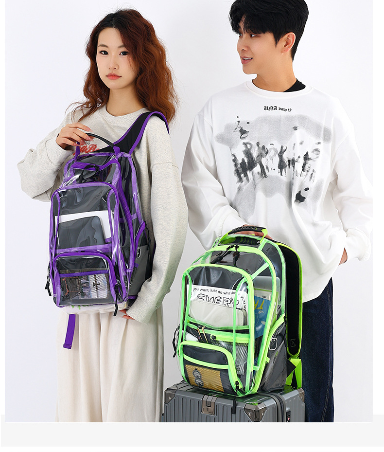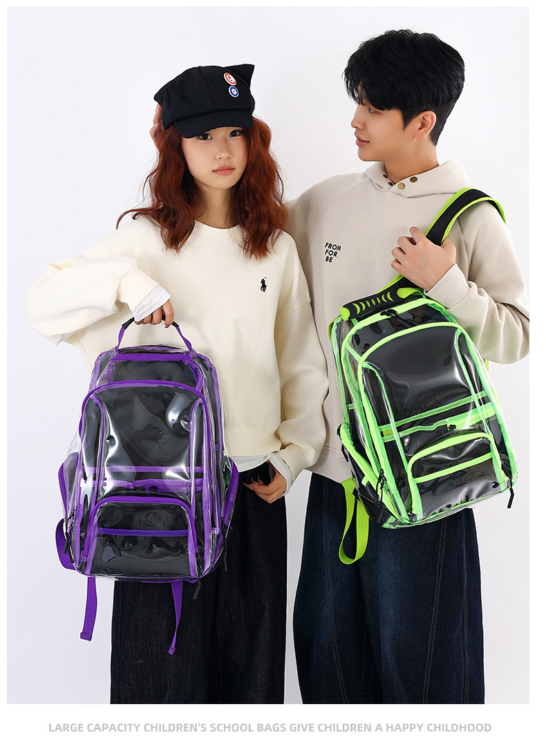 국경 조수 쿨 PVC 투명 스쿨 백 경기장 음악 축제 PVC 배낭 고등학생 대용량 방수 배낭스토어 가기