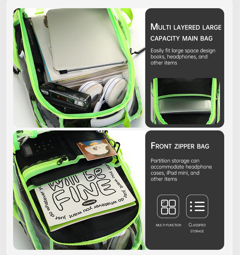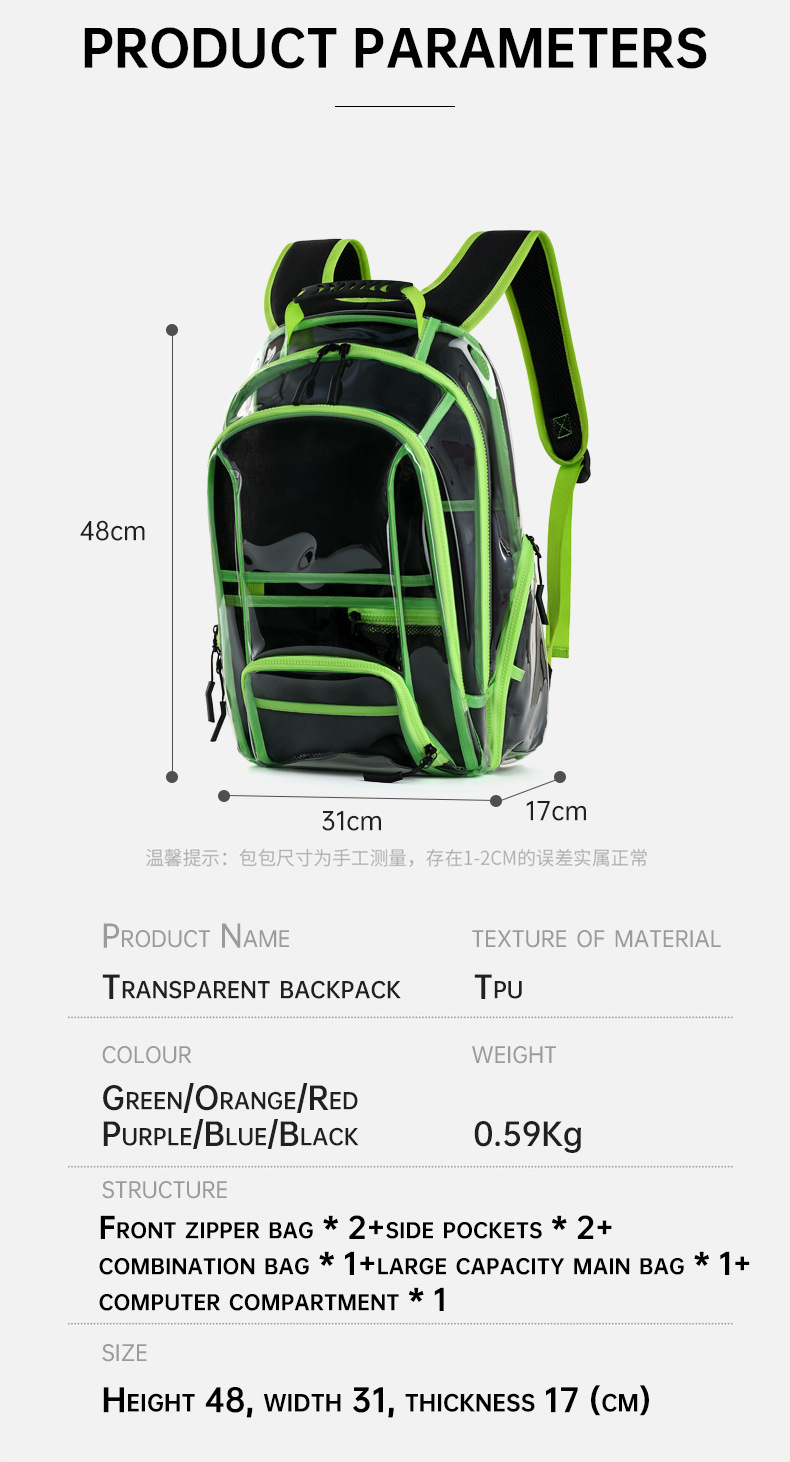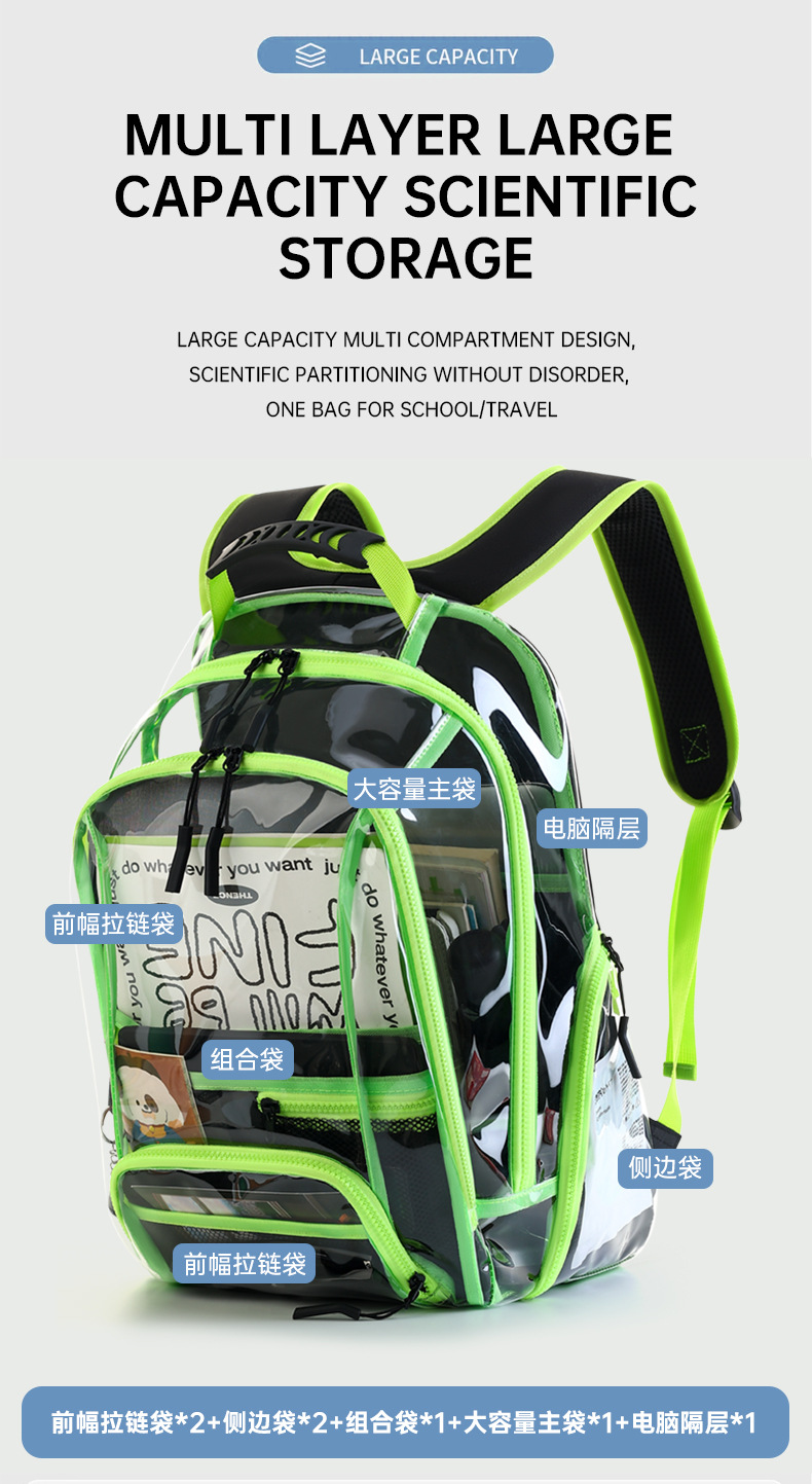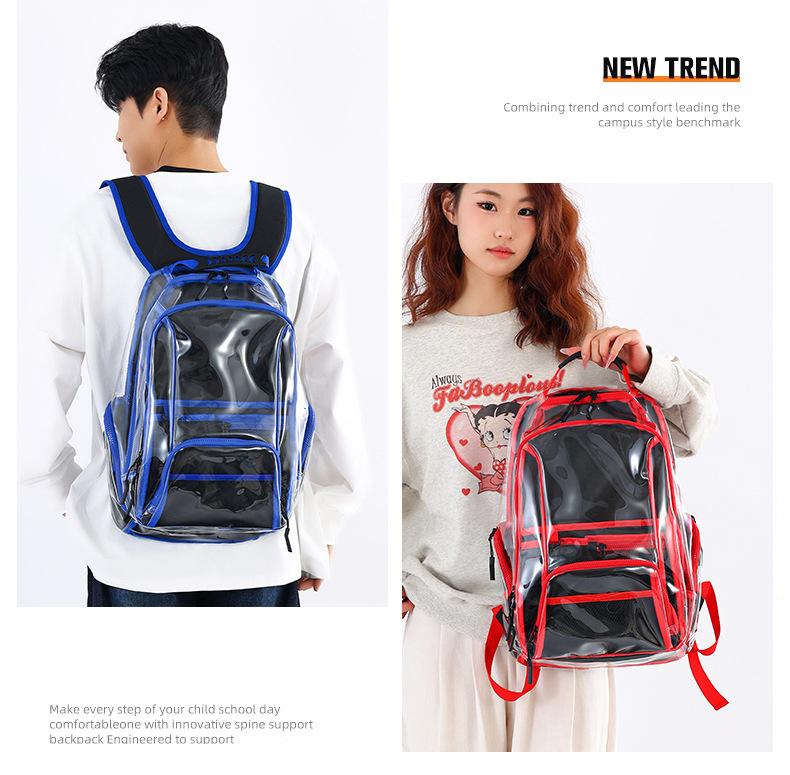 국경 조수 쿨 PVC 투명 스쿨 백 경기장 음악 축제 PVC 배낭 고등학생 대용량 방수 배낭스토어 가기