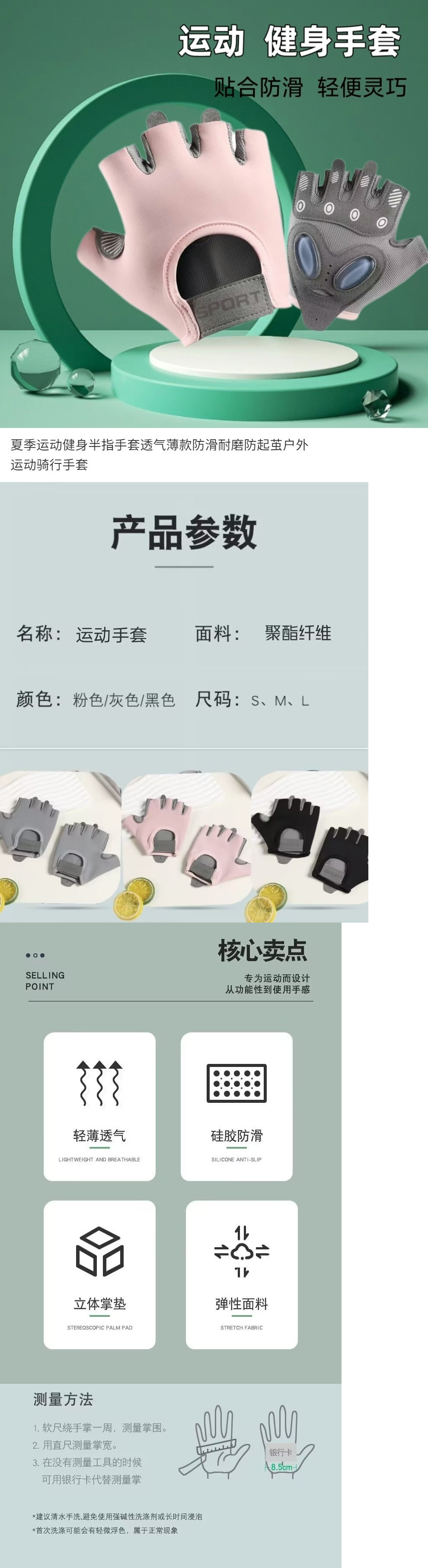 여름 스포츠 피트니스 여성의 반 손가락 장갑 얇은 통기성 미끄럼 방지 마모 방지 야외 스포츠 승마 장갑