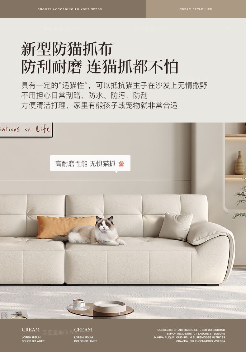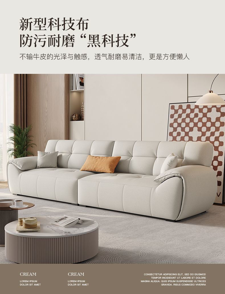 고급 노르딕 스타일 기술 천 패브릭 소파 현대 간단한 거실 크고 작은 아파트 빛 럭셔리 크림 스타일 고양이 스크래치 천