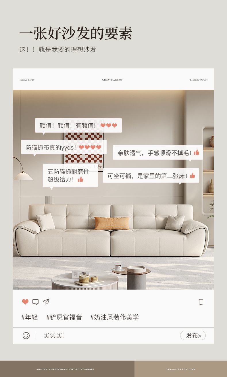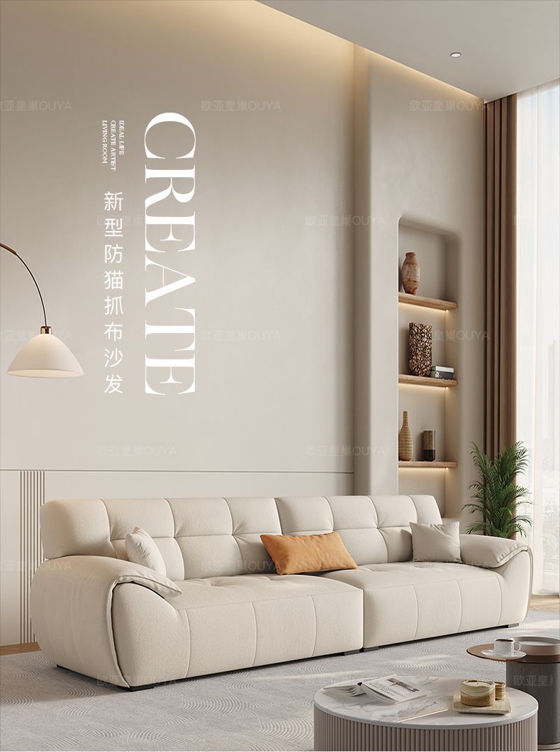 고급 노르딕 스타일 기술 천 패브릭 소파 현대 간단한 거실 크고 작은 아파트 빛 럭셔리 크림 스타일 고양이 스크래치 천스토어 가기