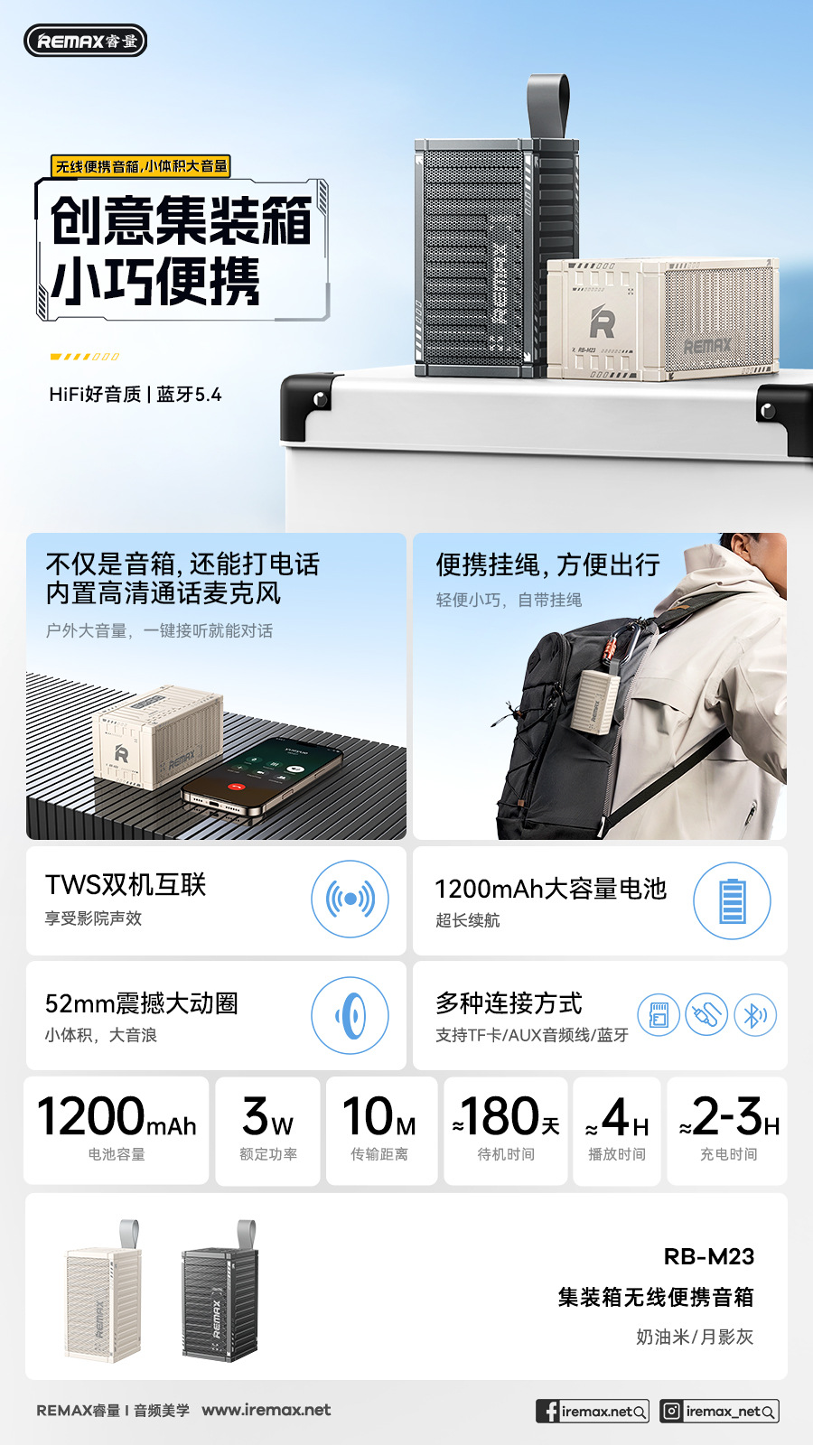 Remax 컨테이너 창조적 인 데스크탑 무선 블루투스 스피커 휴대용 미니 스피커 야외 긴 내구성 오디오