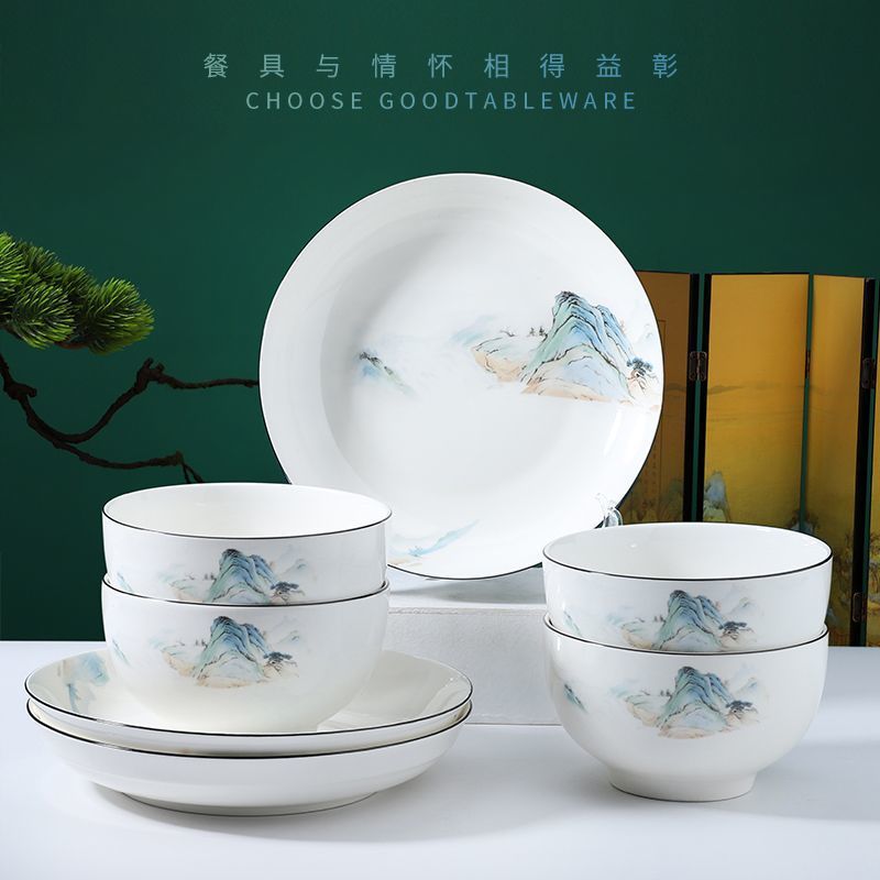요리와 요리 세트 가정용 인터넷 인기있는 중국 스타일 요리 및 접시 젓가락 및 스푼 조합 세라믹 식기 쌀 그릇 수프 그릇 접시 접시스토어 가기