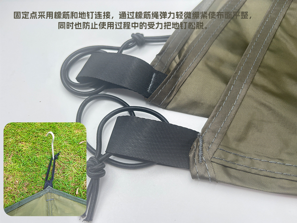 采用弹力橡皮筋设计,橡皮筋的弹性能让布面保持平整,同时也能因为拉扯而让钉子松动;