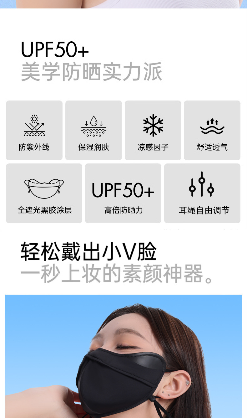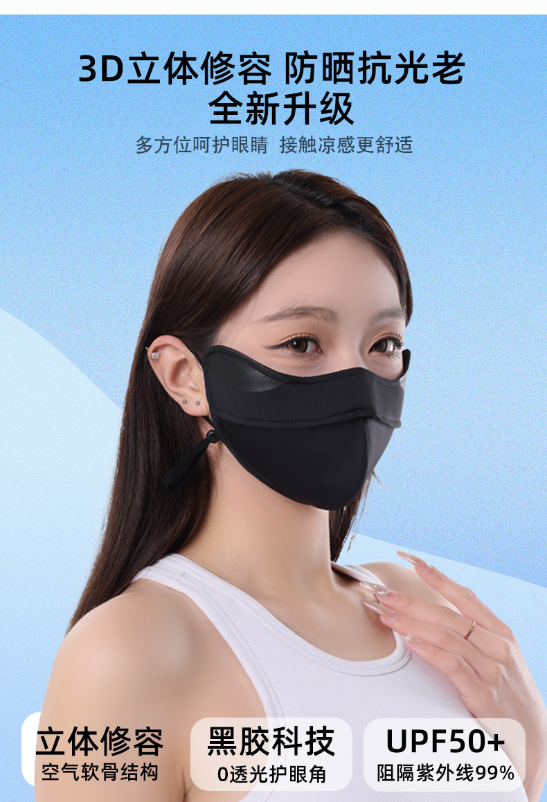 구 텡 선 스크린 마스크 2025 새로운 5d 3 차원 패치 이중 눈 각도 UV 보호 여름 얼음 실크 마스크