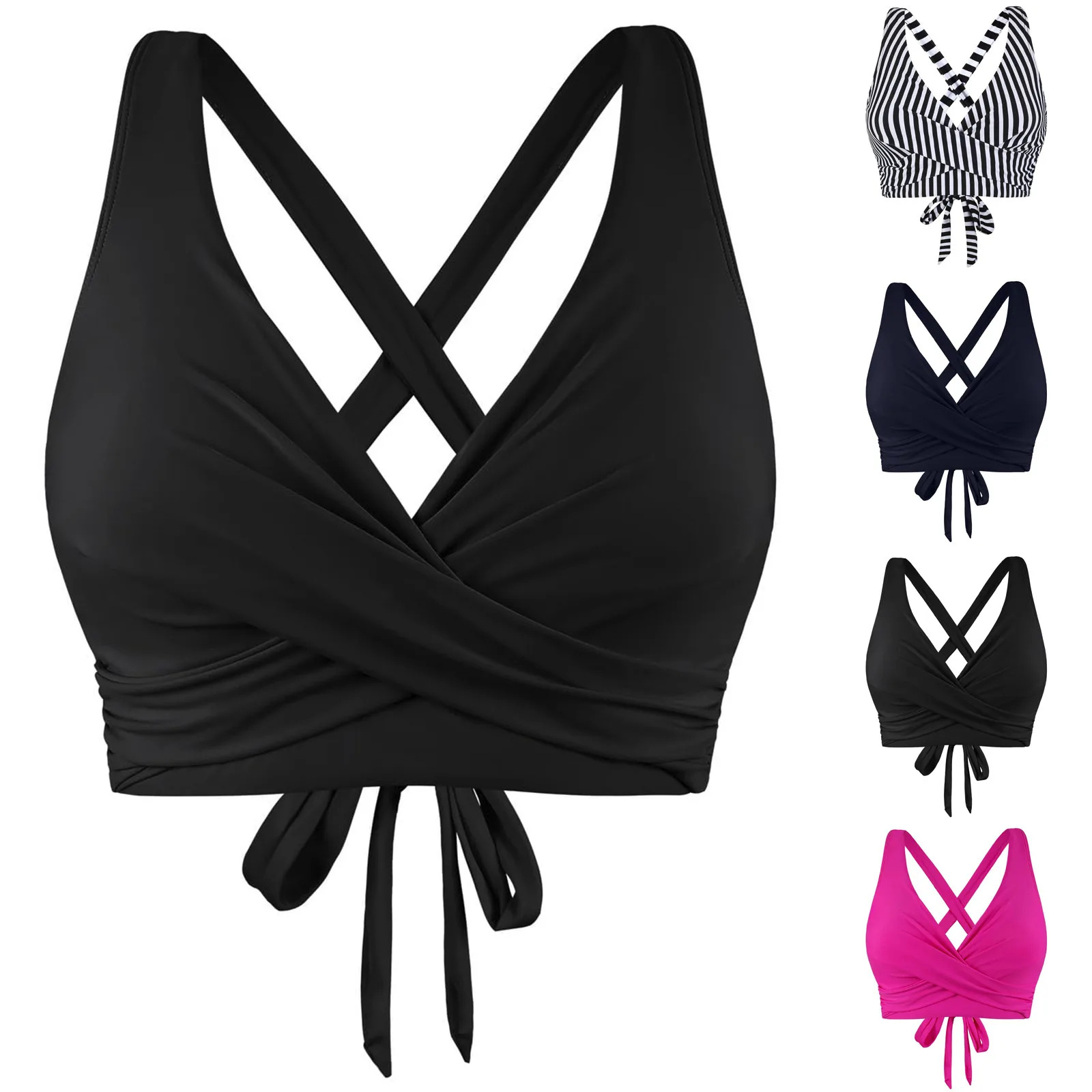 2024 수영복 분할 비키니 단색 크로스 스트랩 아마존 높은 허리 유럽과 미국의 대외 무역 섹시한 탑