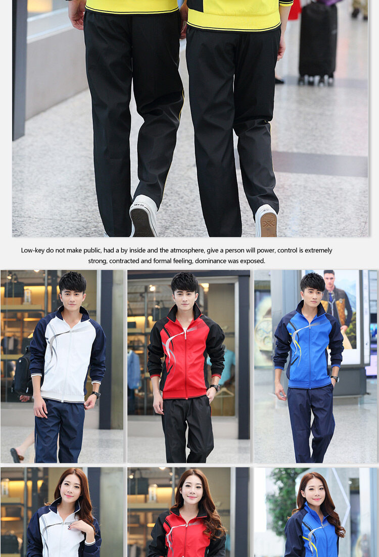 칼라 스포츠웨어 투피스 세트 커플 캐주얼 스포츠 세트 새로운 그룹 러닝 의류 스포츠 회의가있는 봄과 가을 카디건