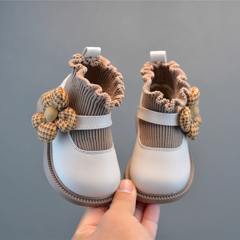 여성 아기 신발 한국 스타일 봄과 가을 새로운 해바라기 공주 짧은 부츠 서양식 유아 신발 미끄럼 방지 소프트 단독 클립 온