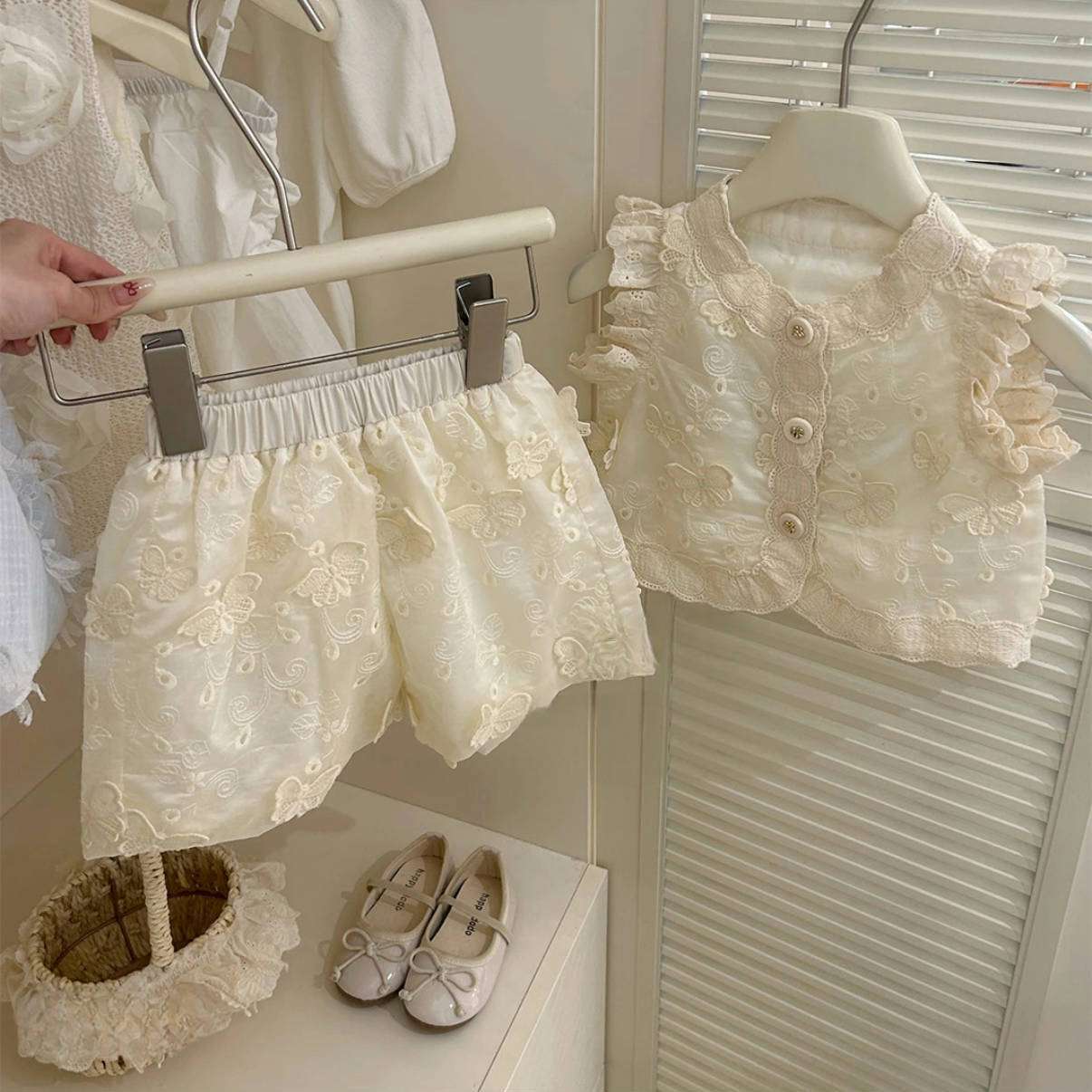 소녀 세트 2025 새로운 어린이 세련된 샤넬 스타일 재킷 반바지 두 조각 세트 봄과 가을 어린이 패션