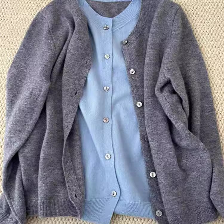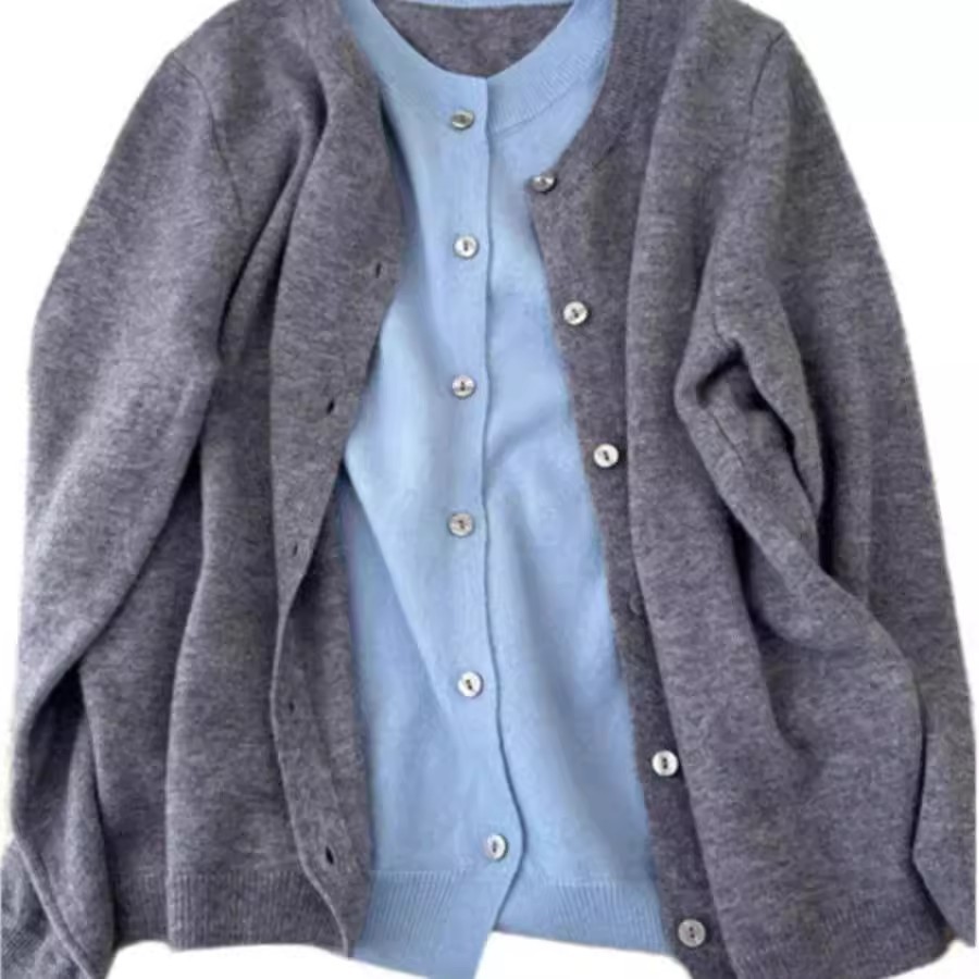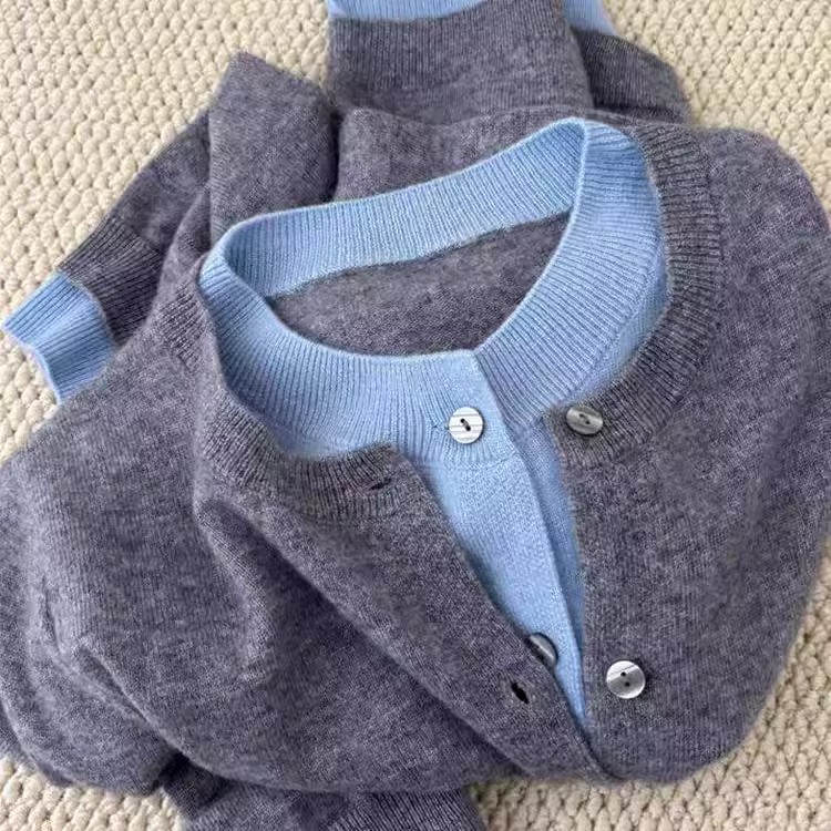 디자인 센스 컬러 매칭 가짜 투피스 스웨터 카디건 여성의 2025 년 봄과 가을 100% 울 코트 스웨터베이스 코트스토어 가기