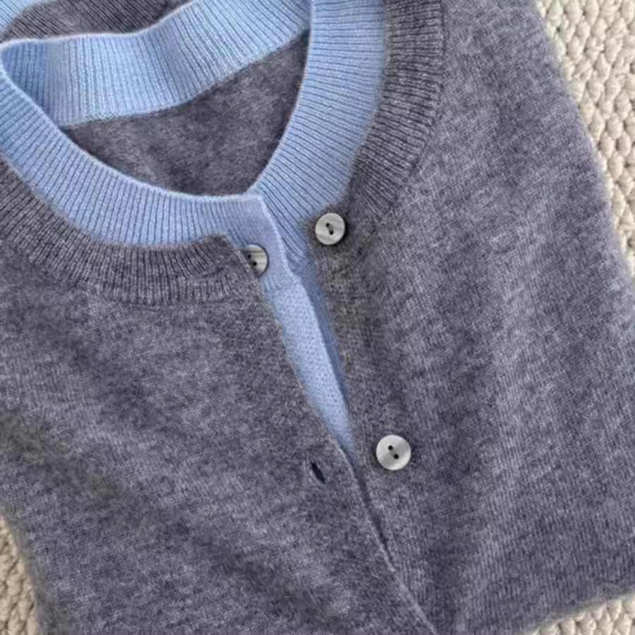 디자인 센스 컬러 매칭 가짜 투피스 스웨터 카디건 여성의 2025 년 봄과 가을 100% 울 코트 스웨터베이스 코트