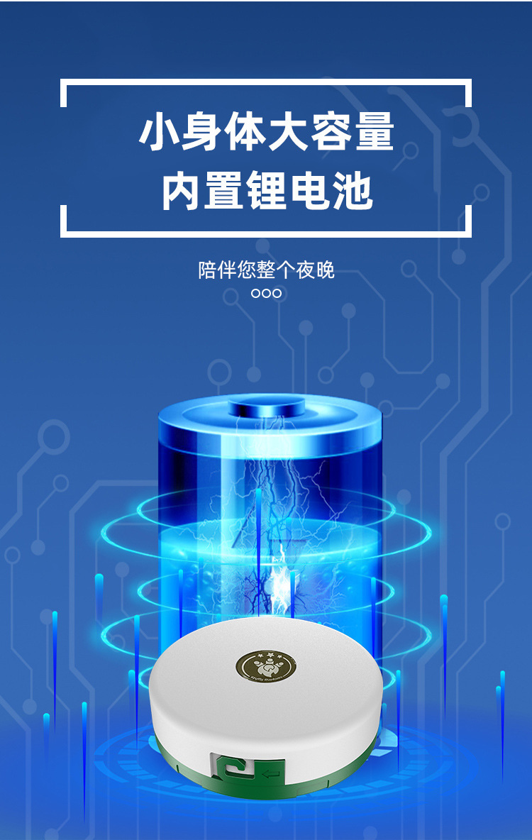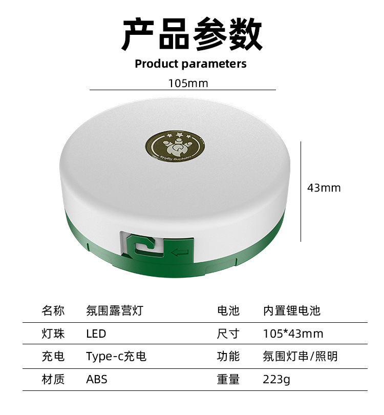 尺寸为直径105mm,高度43mm,产品净重223g,面板灯为36颗SMD贴片暖白光LED,灯串为10米彩光+暖白光,每隔10cm一组灯芯。