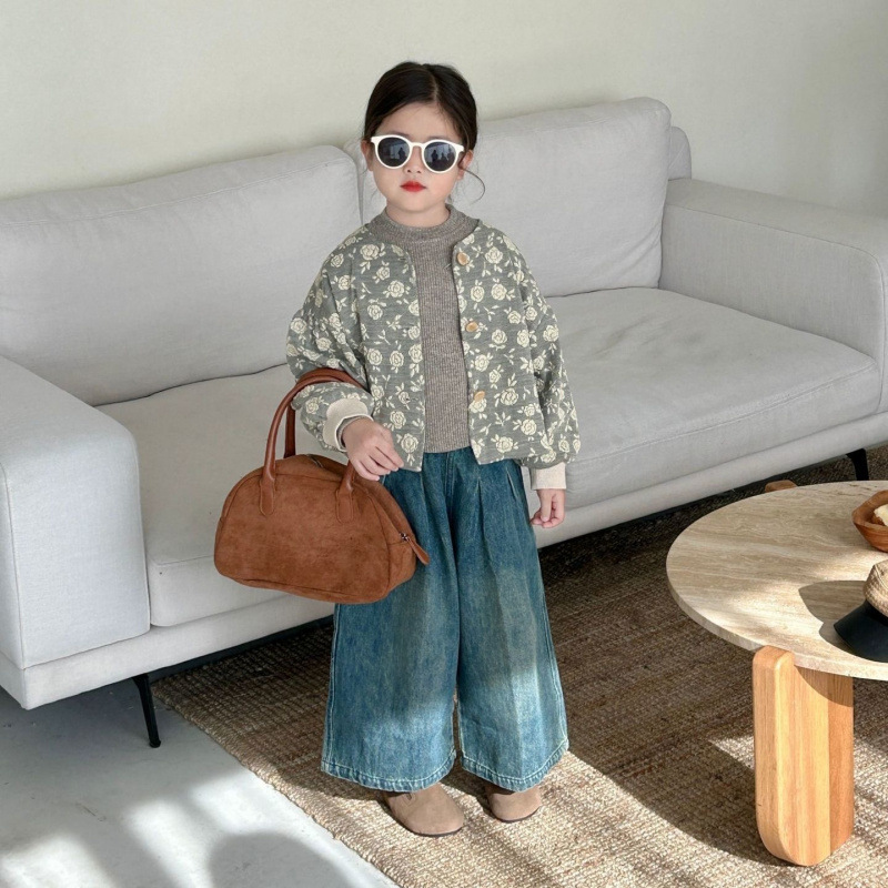 소녀의 봄 가을 세트 2025 어린이 복고풍 서양식 올매치 재킷 어린이 한국 느슨한 넓은 다리 청바지스토어 가기