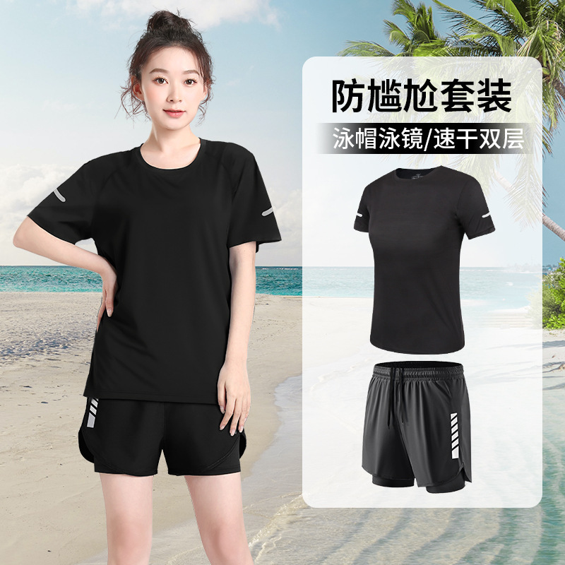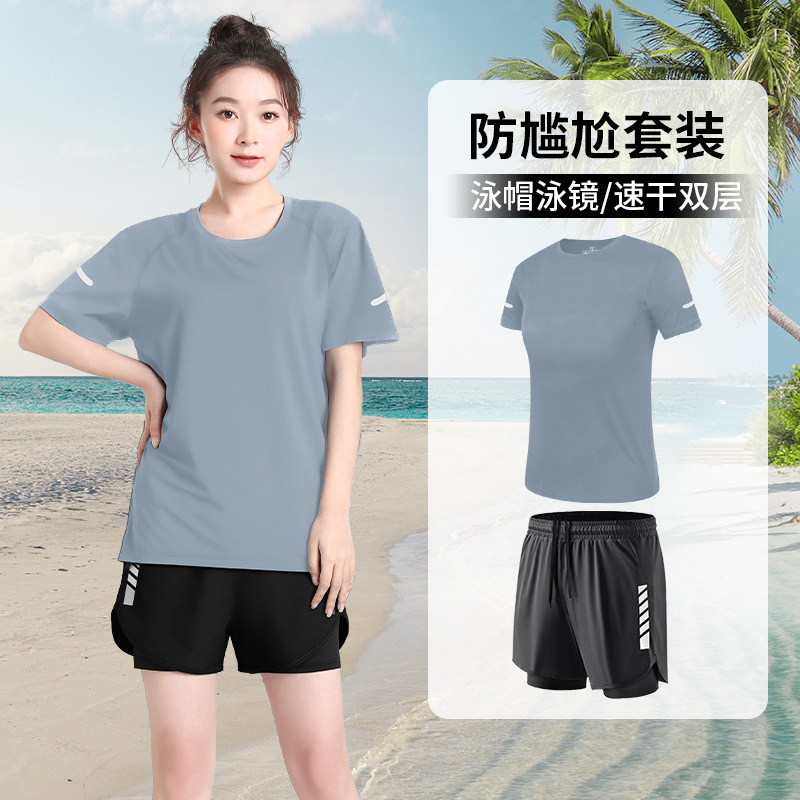 달리기 세트 여성의 빠른 건조 옷 아이스 실크 스포츠 요가 옷 플러스 사이즈 여름 새로운 반팔 아침 달리기 피트니스 옷스토어 가기