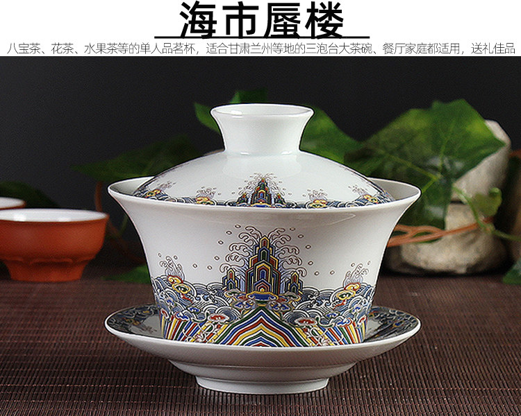 # 추가 대형 커버 그릇 도자기 닝샤 란저우 인촨 세 배터리 홈 레스토랑 향기 차 시카이 여덟 보물 차 화이트스토어 가기
