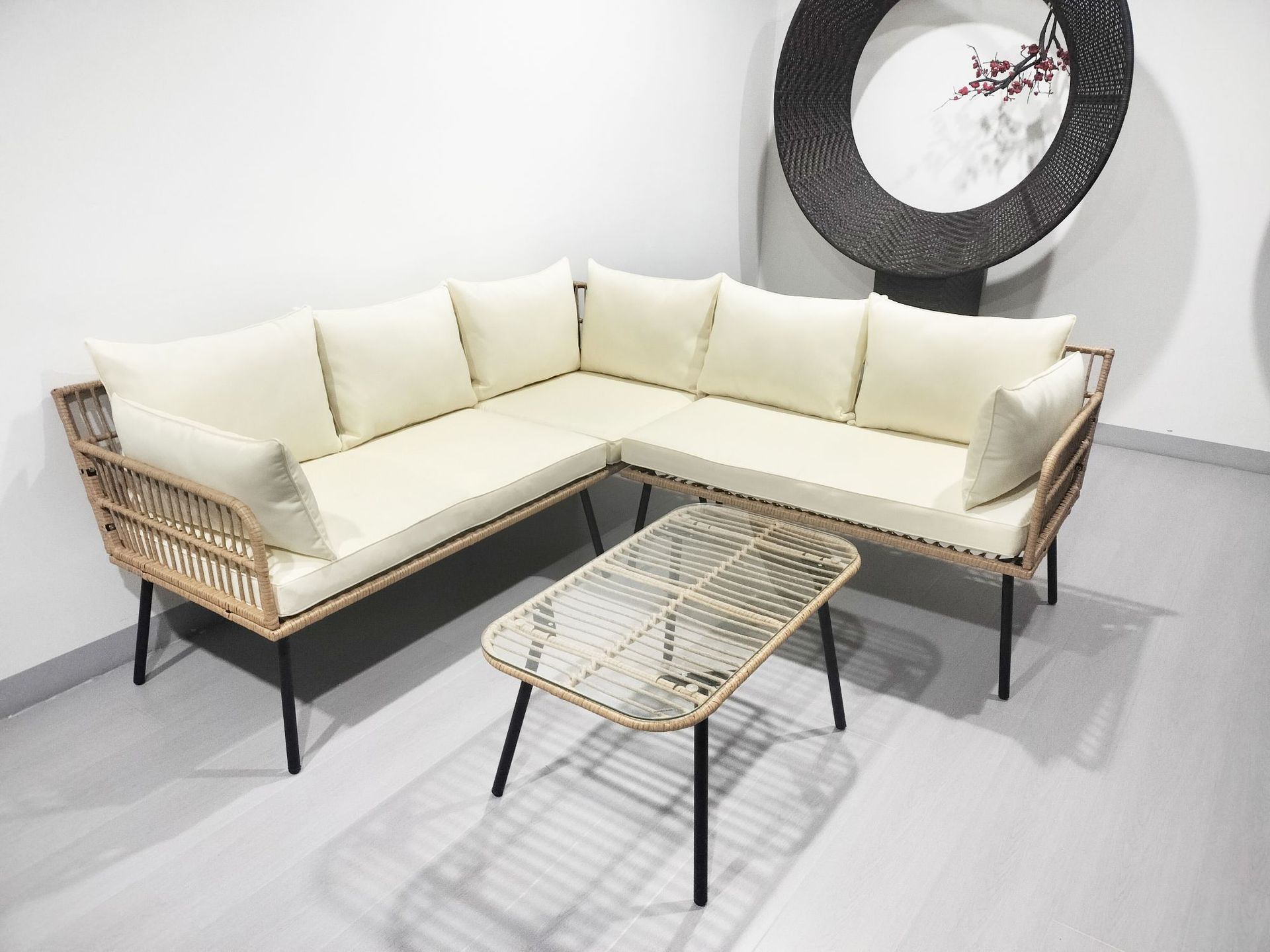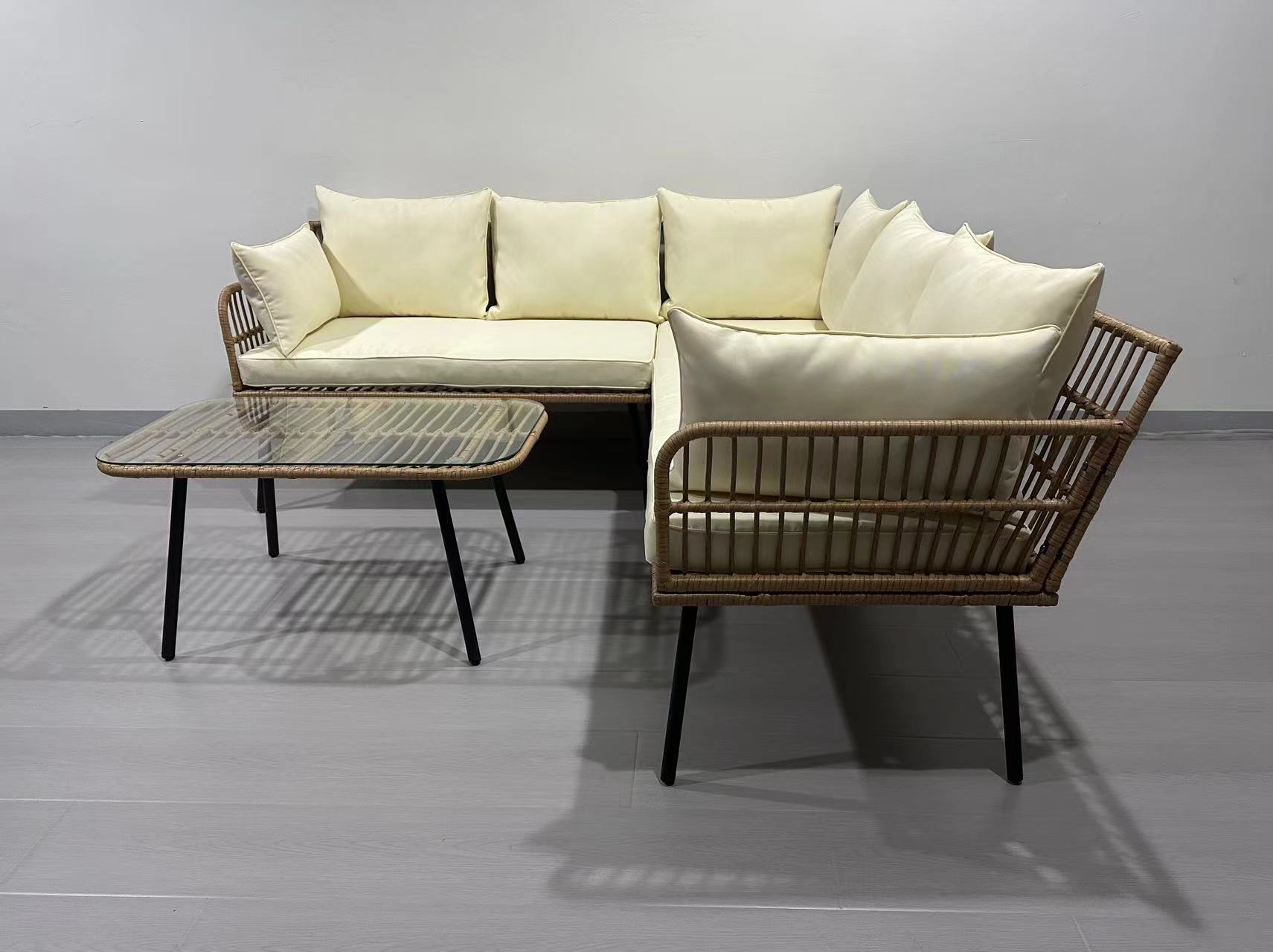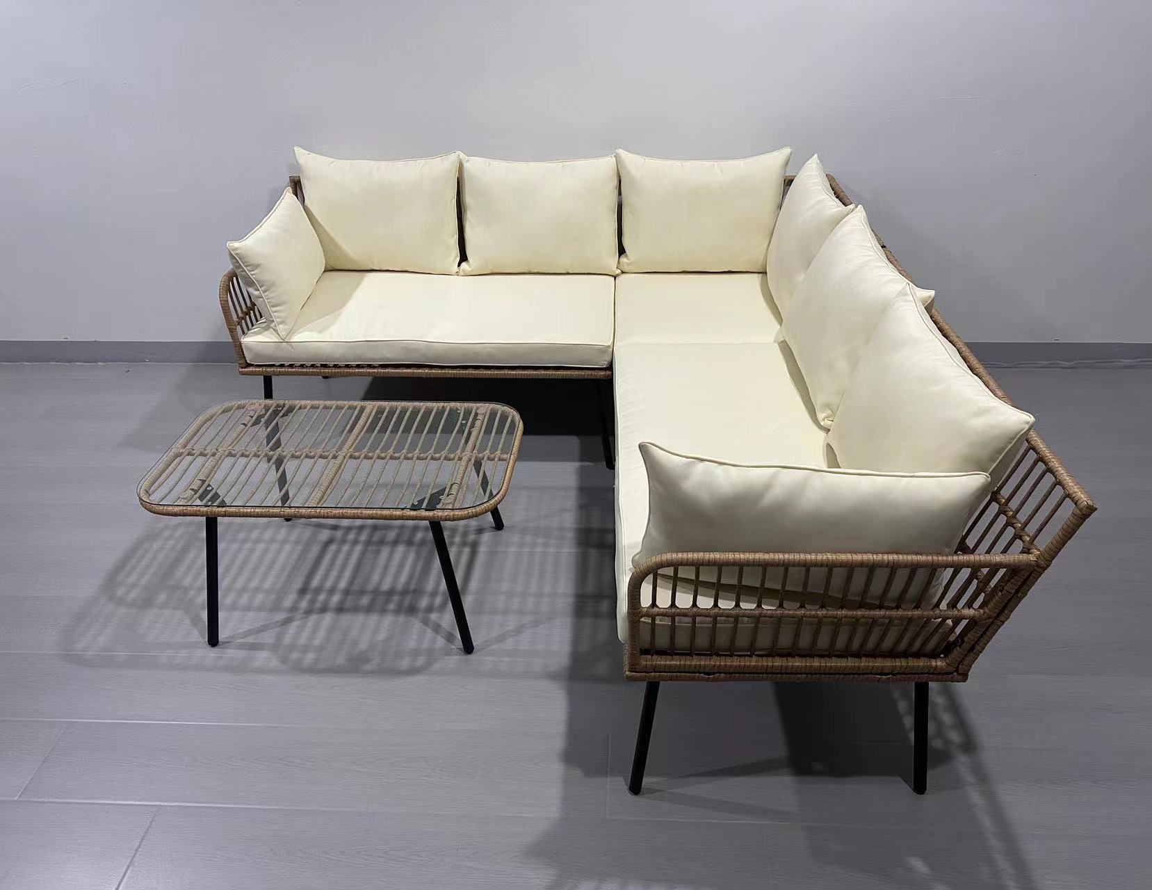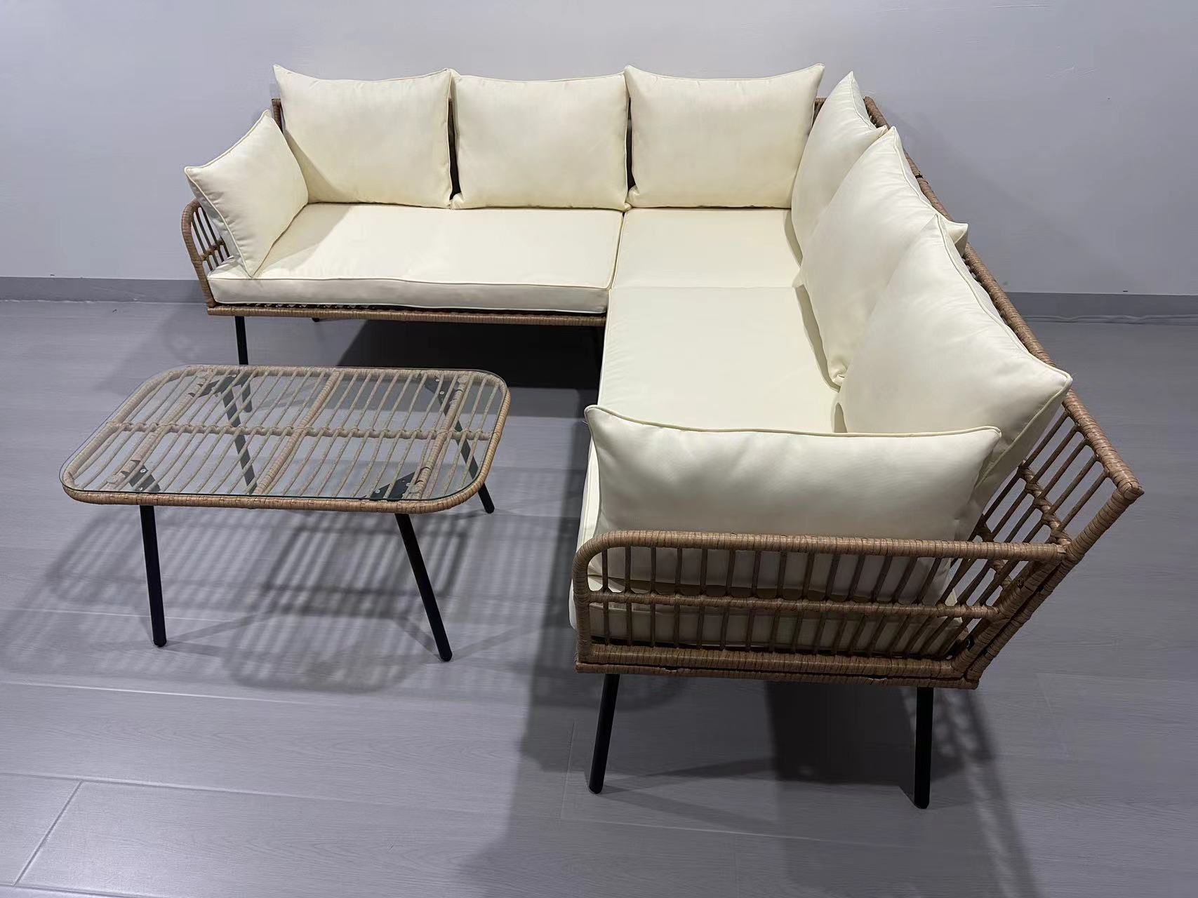 야외 소파 파티오 야외 레저 의자 등나무 소파 가든 빌라 발코니 가구 커피 테이블 세트 코너 소파