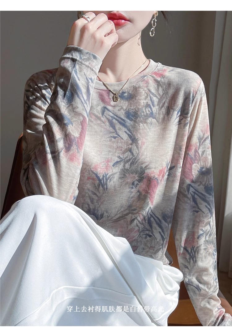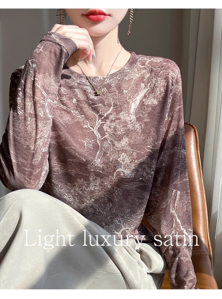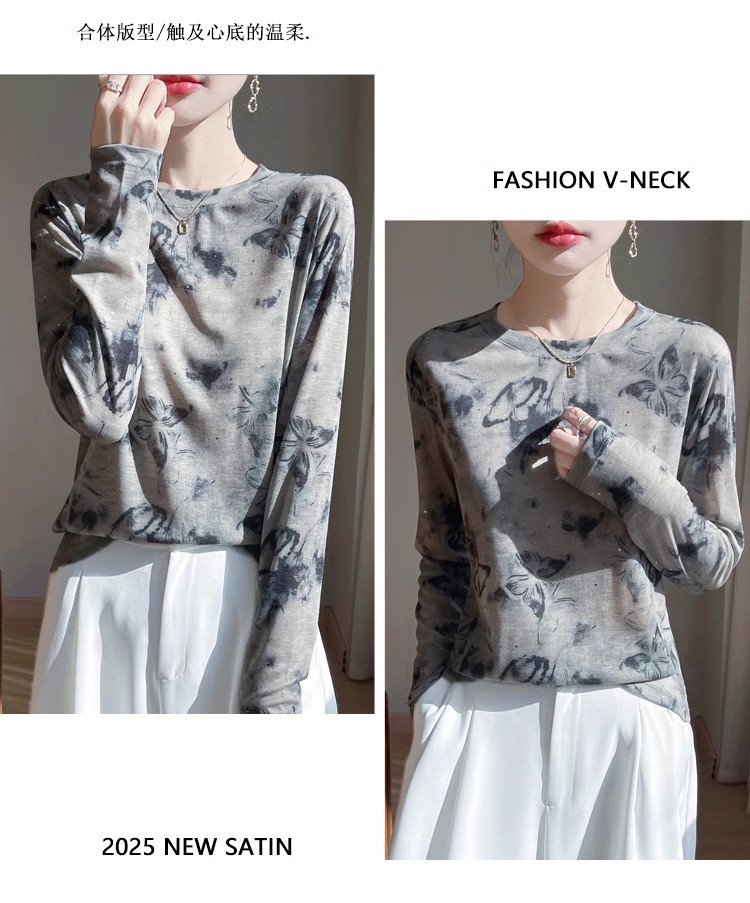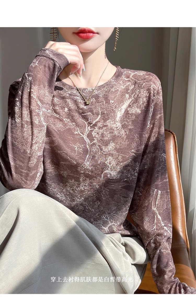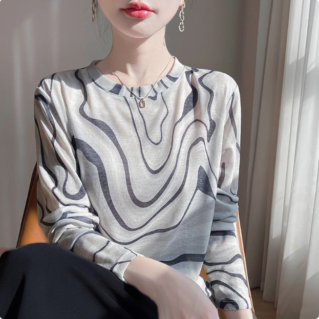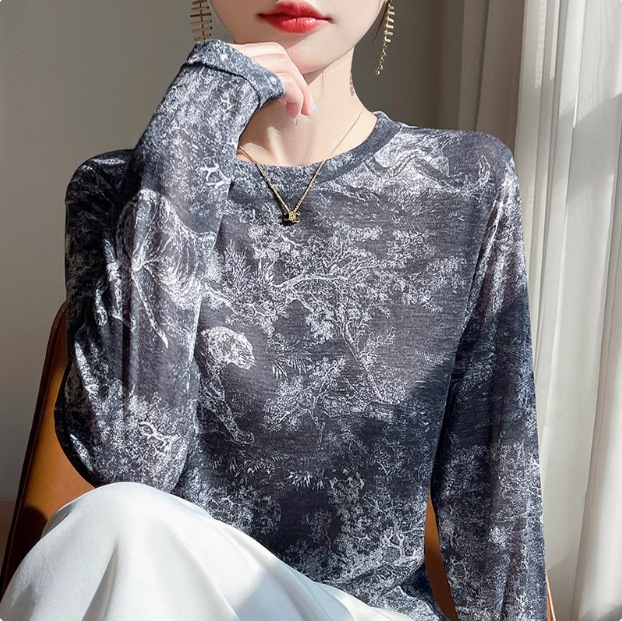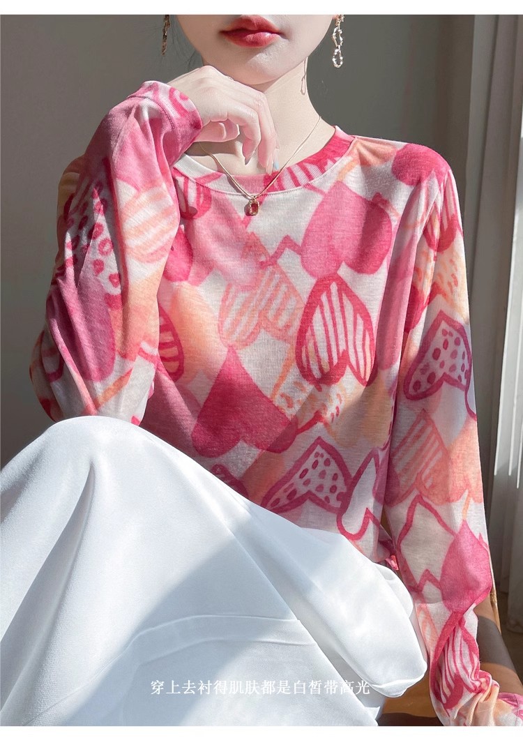 2025 새로운 나비 인쇄 메쉬 통기성 얇은 기본 셔츠 최고 연령을 줄여 긴 소매 올 매치 선스크린 티셔츠 여성용스토어 가기