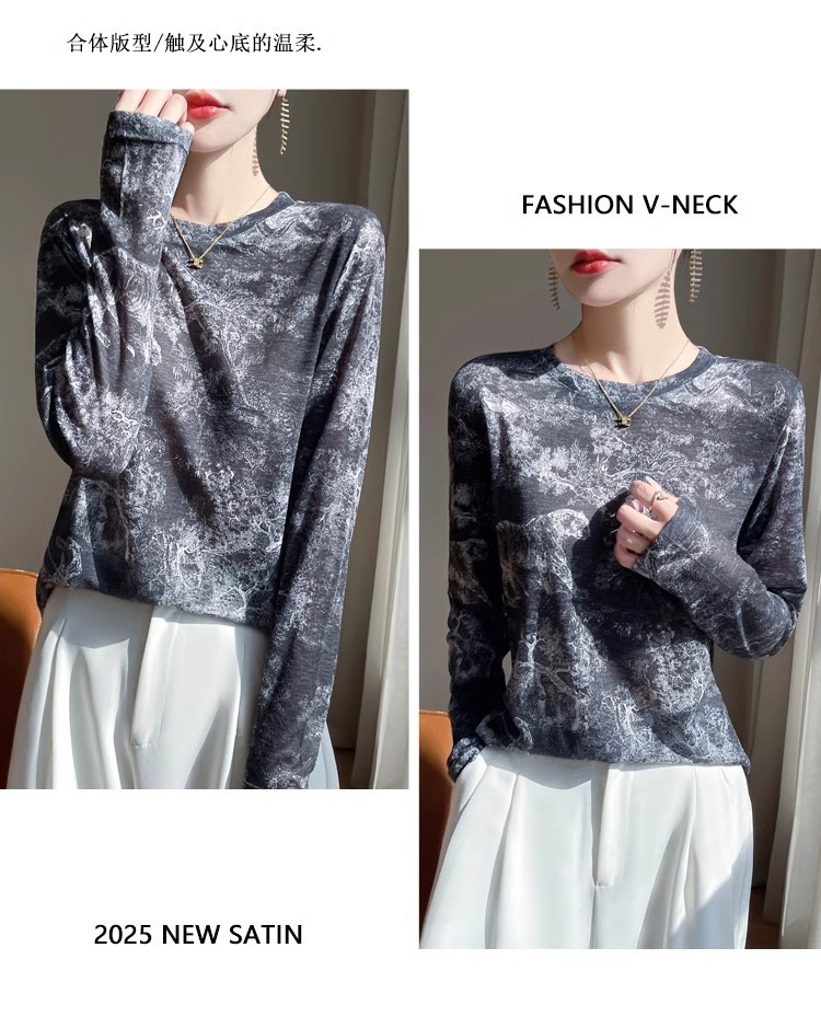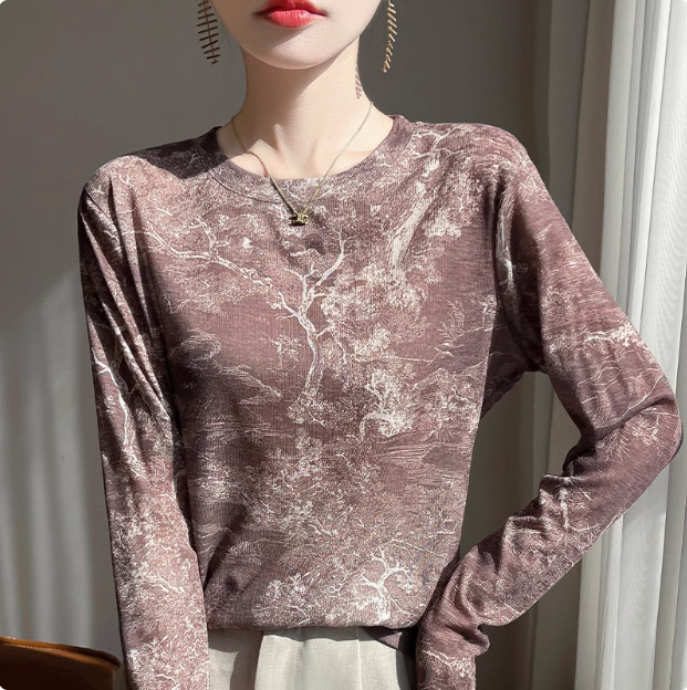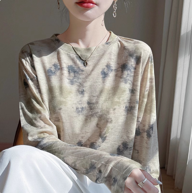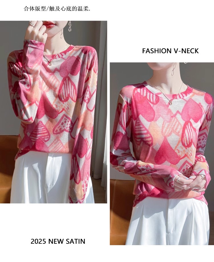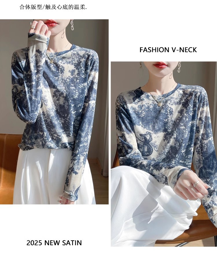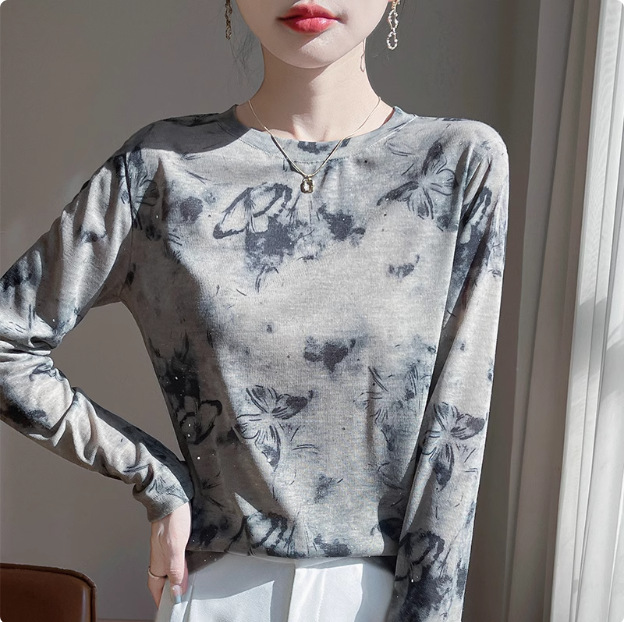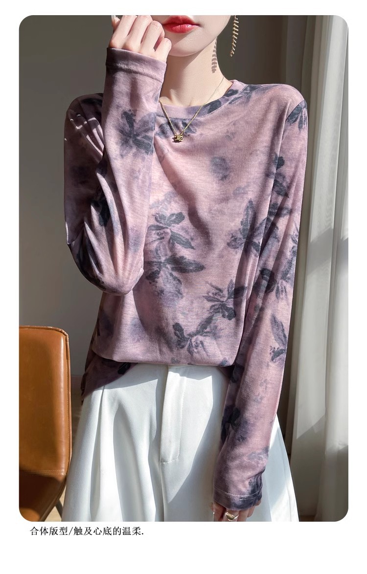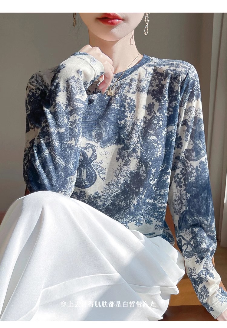 2025 새로운 나비 인쇄 메쉬 통기성 얇은 기본 셔츠 최고 연령을 줄여 긴 소매 올 매치 선스크린 티셔츠 여성용스토어 가기
