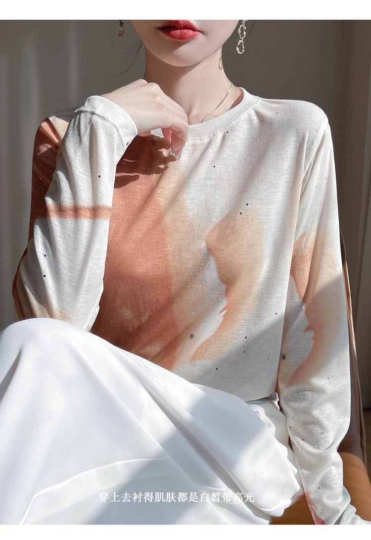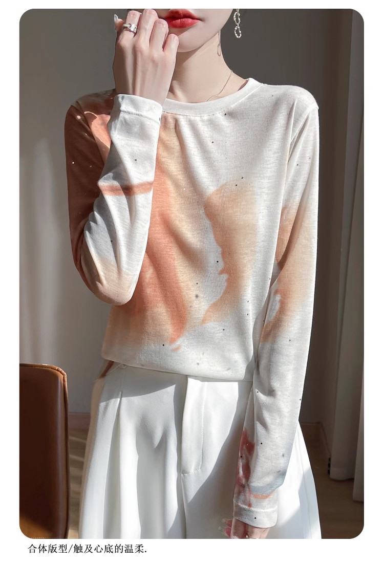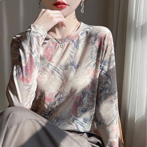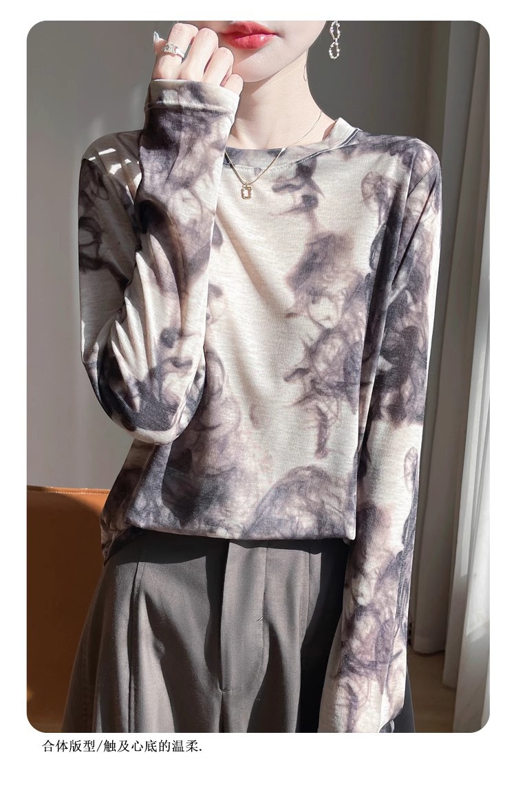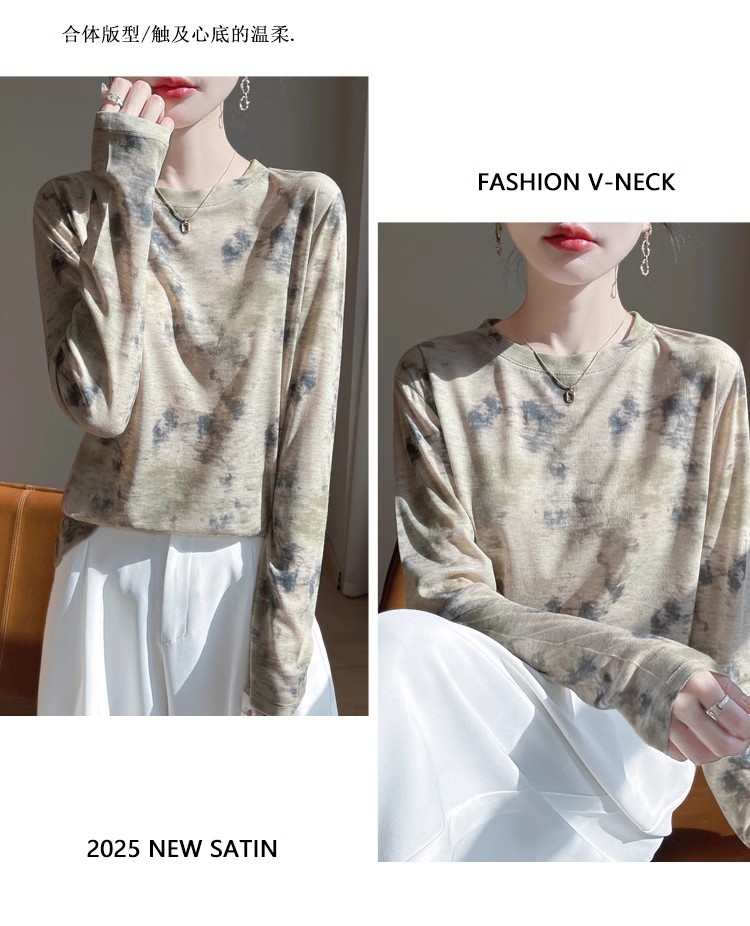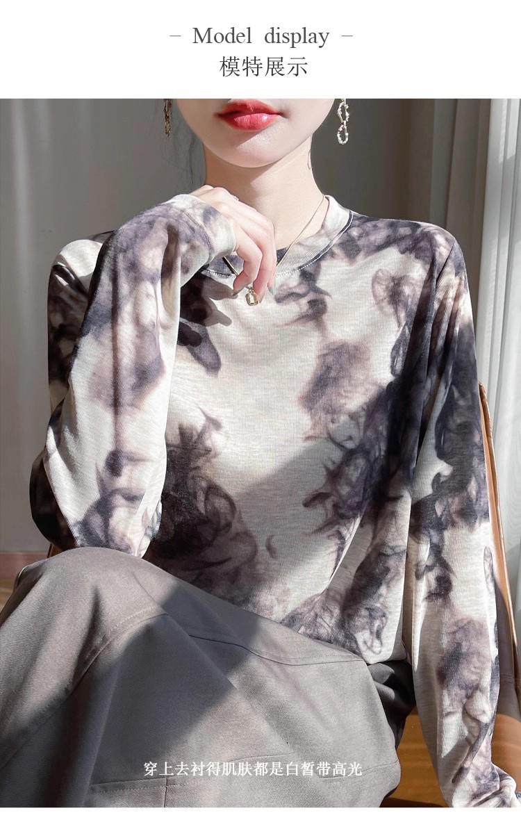 2025 새로운 나비 인쇄 메쉬 통기성 얇은 기본 셔츠 최고 연령을 줄여 긴 소매 올 매치 선스크린 티셔츠 여성용스토어 가기
