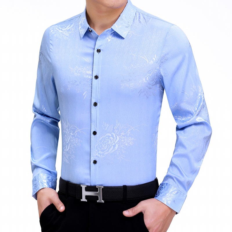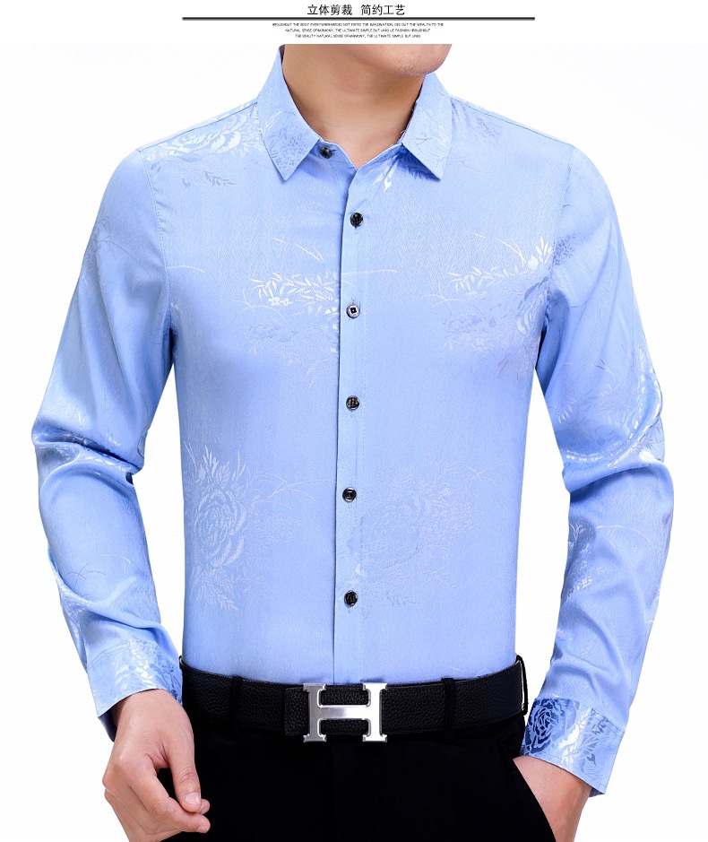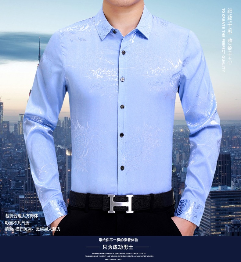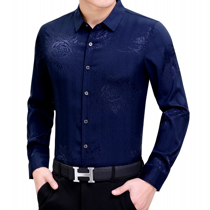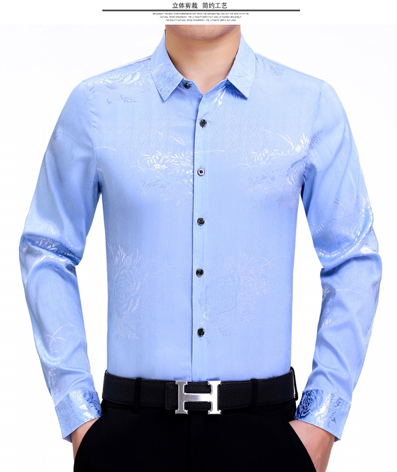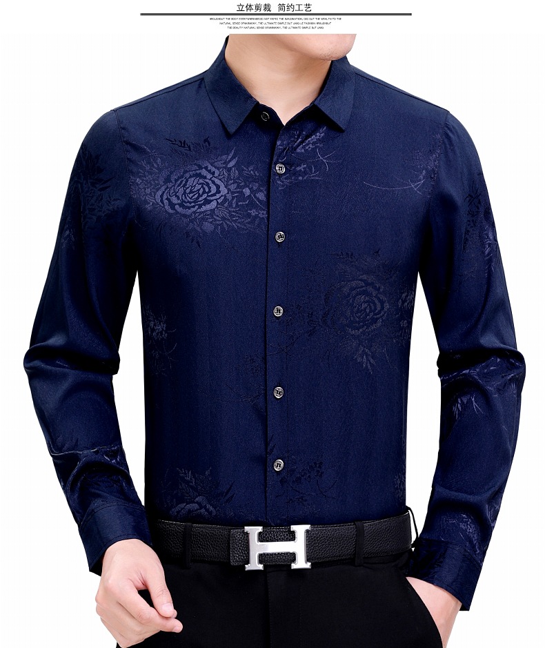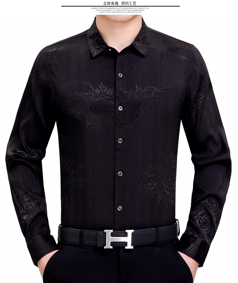 빅 브랜드 하이 엔드 봄과 가을 남성복 뽕나무 실크 주름 방지 탑 긴팔 셔츠 비즈니스 캐주얼 남성 셔츠스토어 가기